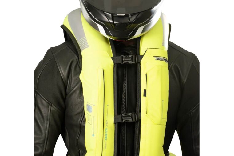 Avec le gilet e-Turtle, Hélite inaugure la technologie sans fil. Le capteur placé sur la fourche de la moto communique avec celui...
