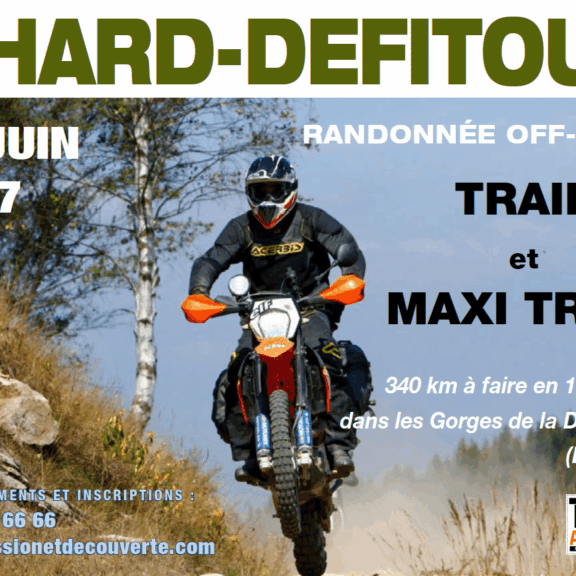 L’ hard-défitour le 10 juin 2017 Rando trail et maxi trail, enduro acceptées 340kms à faire en moins de 15...