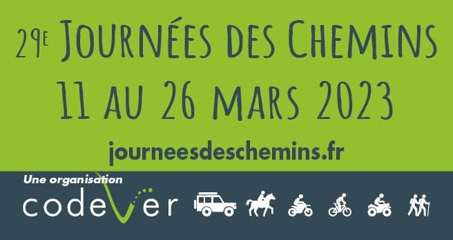 La 29e édition des journées des chemins organisé par le CODEVER aura lieu du samedi 11 au dimanche 26 mars...