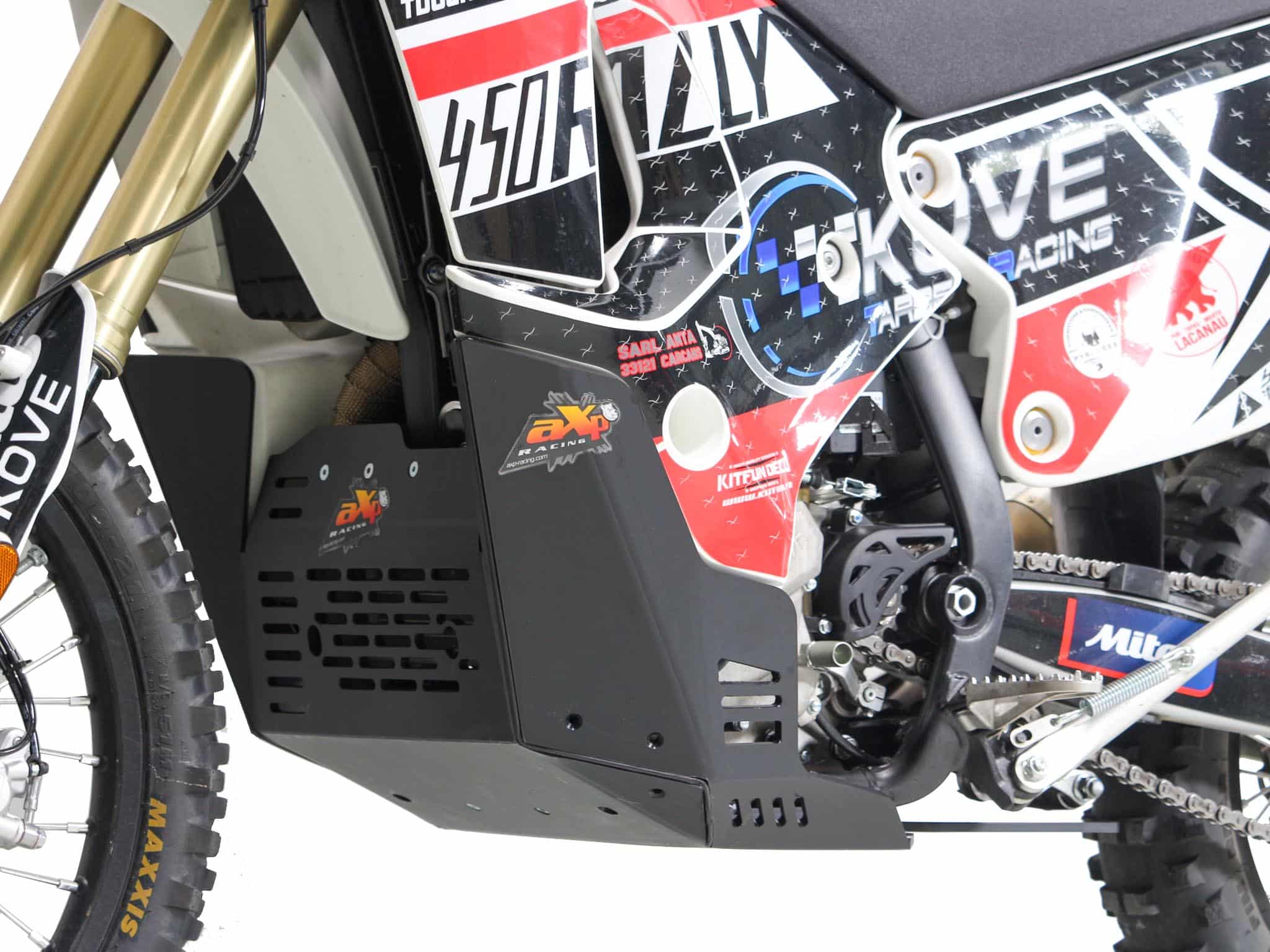 Fabriqué en plastique PEHD de 8 mm d’épaisseur, il est conçu pour protéger efficacement le réservoir et l’échappement. Une option intéressante pour les utilisateurs est la possibilité d’ajouter une plaque de protection de biellette indépendante, laissant ainsi le choix de protéger cette partie selon les besoins spécifiques.