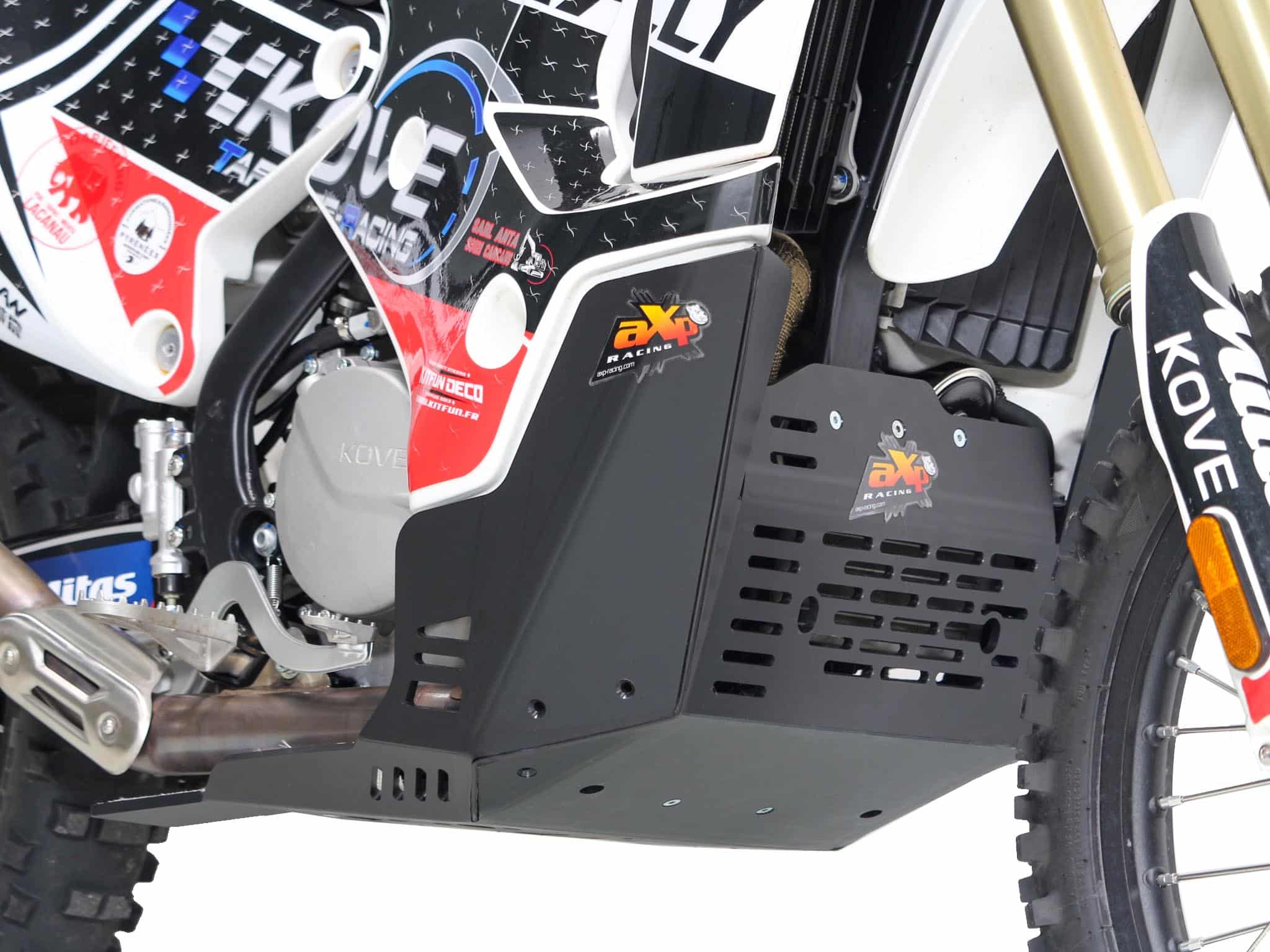 A peine essayée dans notre dernier numéro de Trail Adventure Magazine (n°38) et voici que la Kove 450 Rally s’apprête déjà à recevoir son sabot Français AXP Racing.