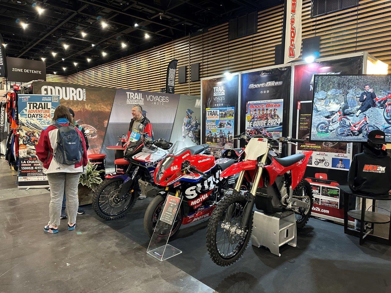 Le stand TRAIL ADVENTURE MAGAZINE / CPPRESSE a illustré la passion et la diversité du groupe, présentant une exposition de motos exceptionnelles, y compris la Suzuki #1 du SERT Championne du Monde EWC, la Honda Transalp préparée pour l’Africa Eco Race, la Stark Varg et la nouvelle Montesa RR. Les équipes du pôle moto du Groupe CPPRESSE ont profité de l’occasion pour renforcer les liens avec ses partenaires et lecteurs,