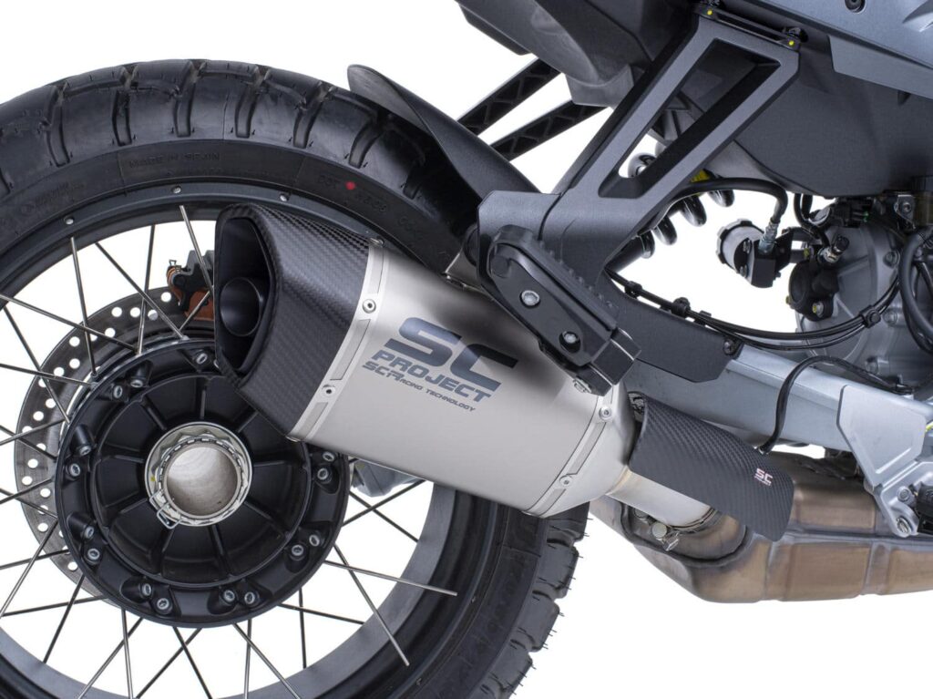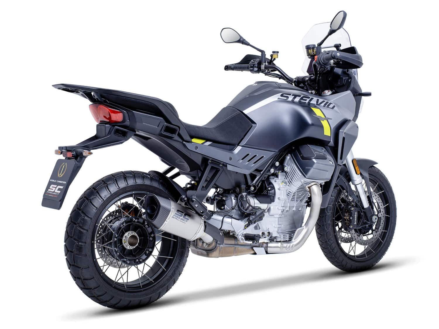 La Moto Guzzi Stelvio, une nouveauté marquante du segment trail, signe le retour en force de la marque de Mandello del Lario. Pour accompagner cette machine, le spécialiste italien des échappements SC-Project propose un silencieux SC1-R parfaitement adapté.