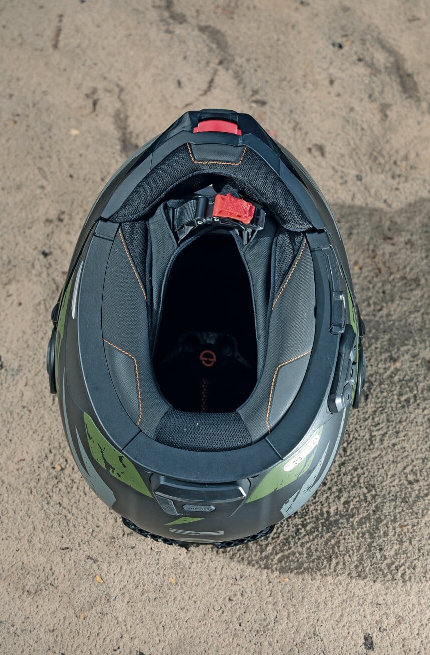 Ce système fonctionne bien, même au guidon des trails les plus puissants du marché. De plus, la casquette est amovible, permettant de retrouver une apparence plus routière.