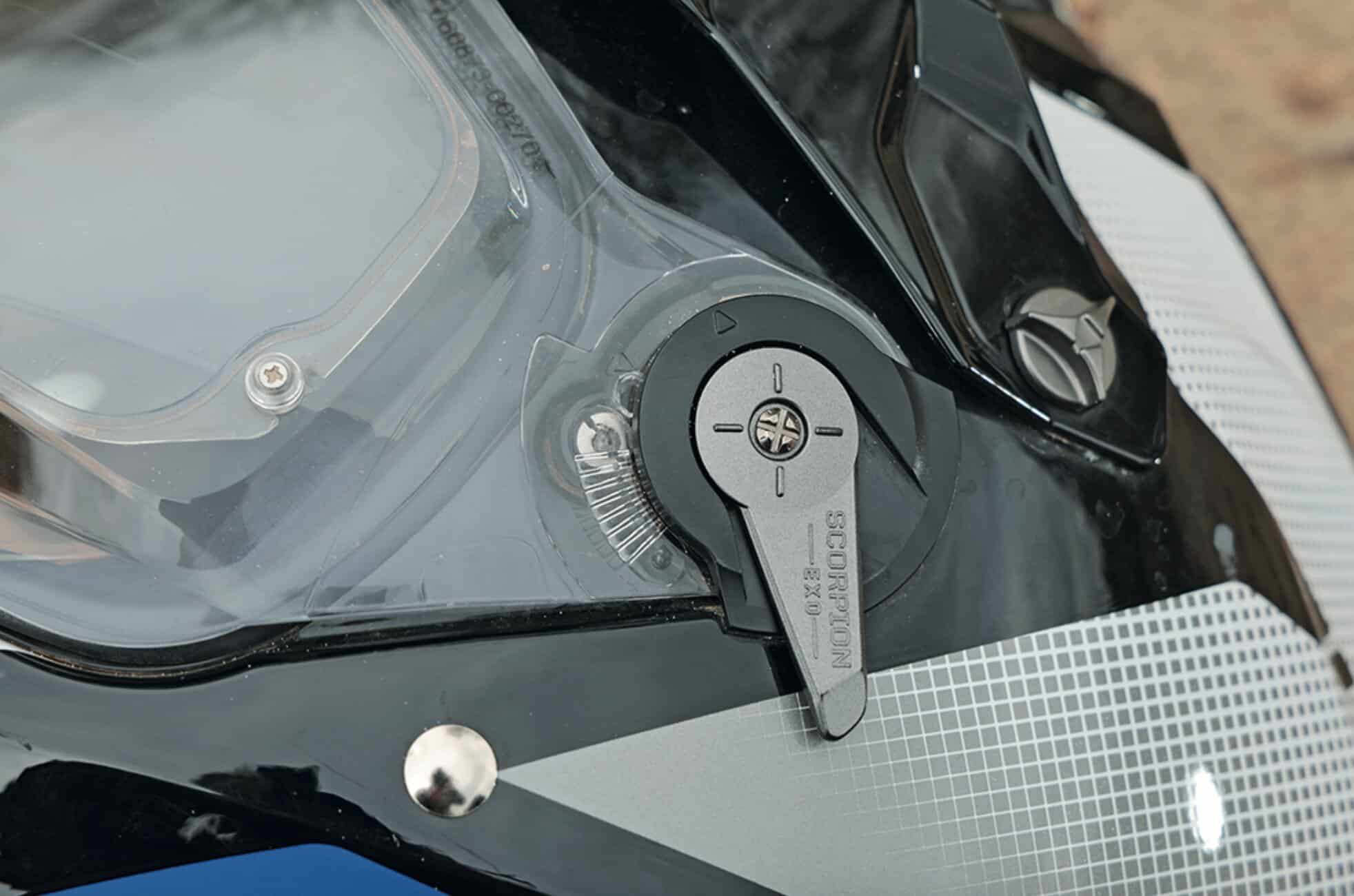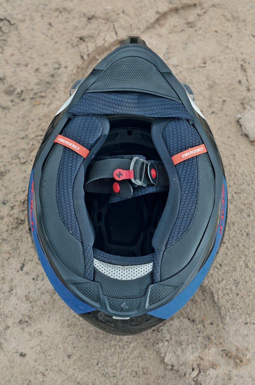 La marque Scorpion a récemment enrichi son offre sur le segment trail avec ce nouvel intégral en fibre, proposé à un tarif sous la barre des 400 € Pour se démarquer sur un marché ultra-concurrentiel, ce casque mise sur de nombreux aspects pratiques, notamment son système Airfit Concept.