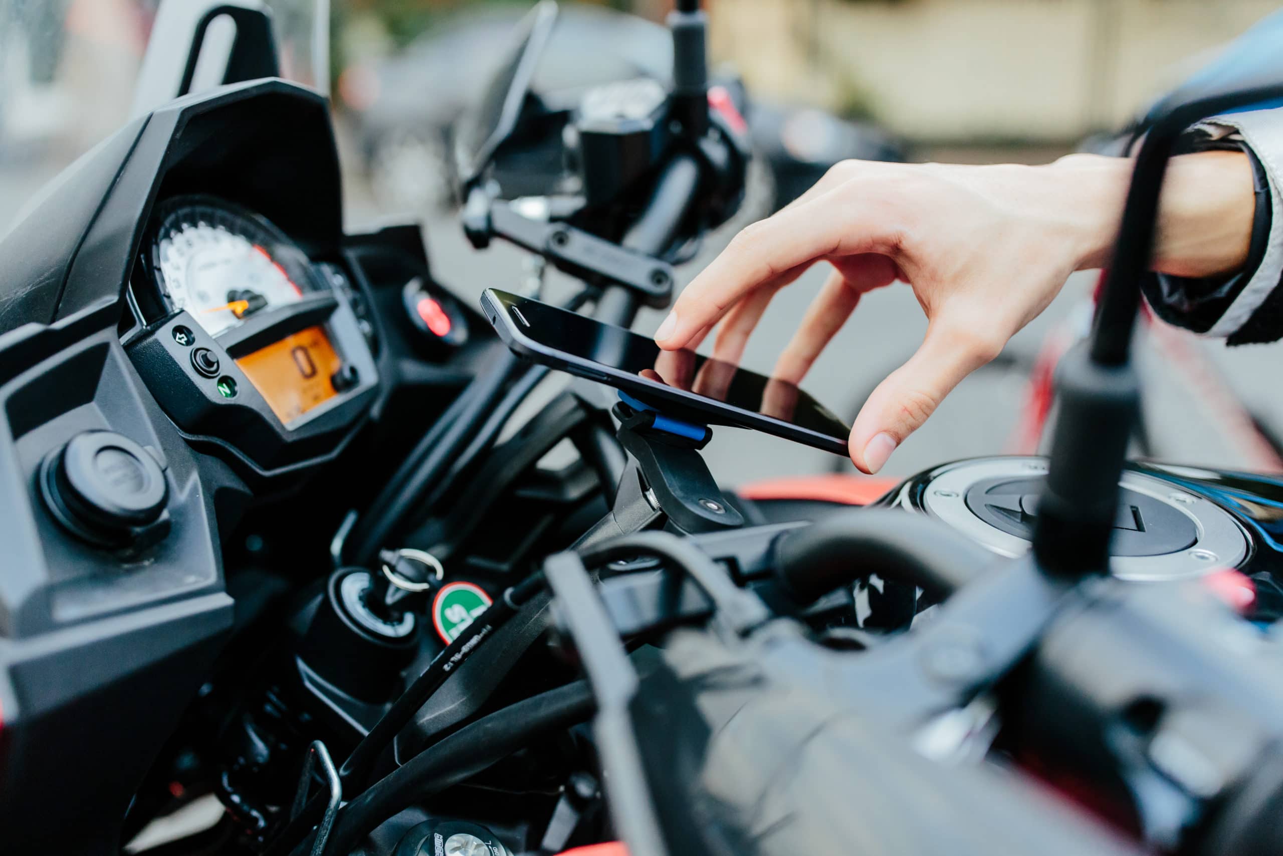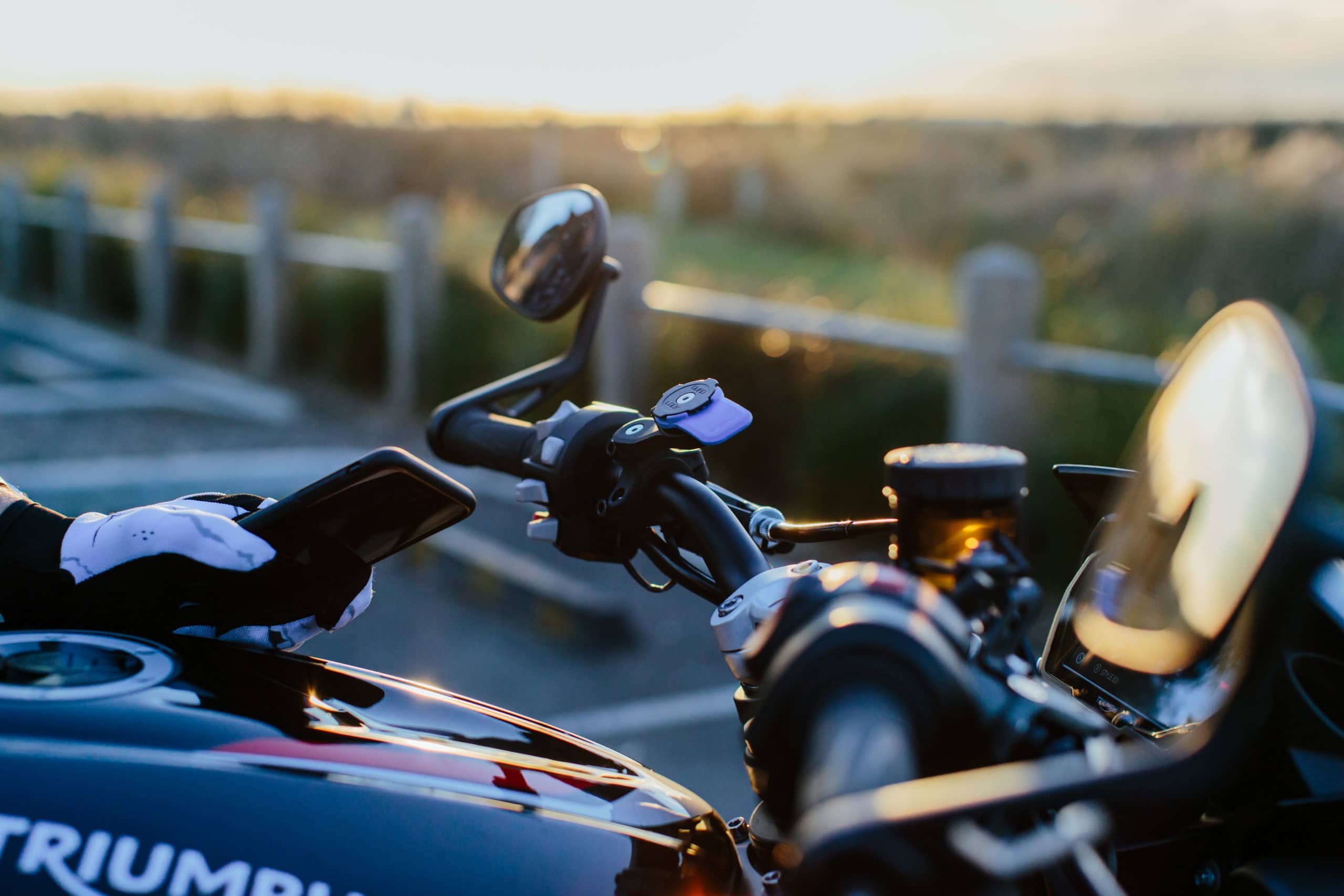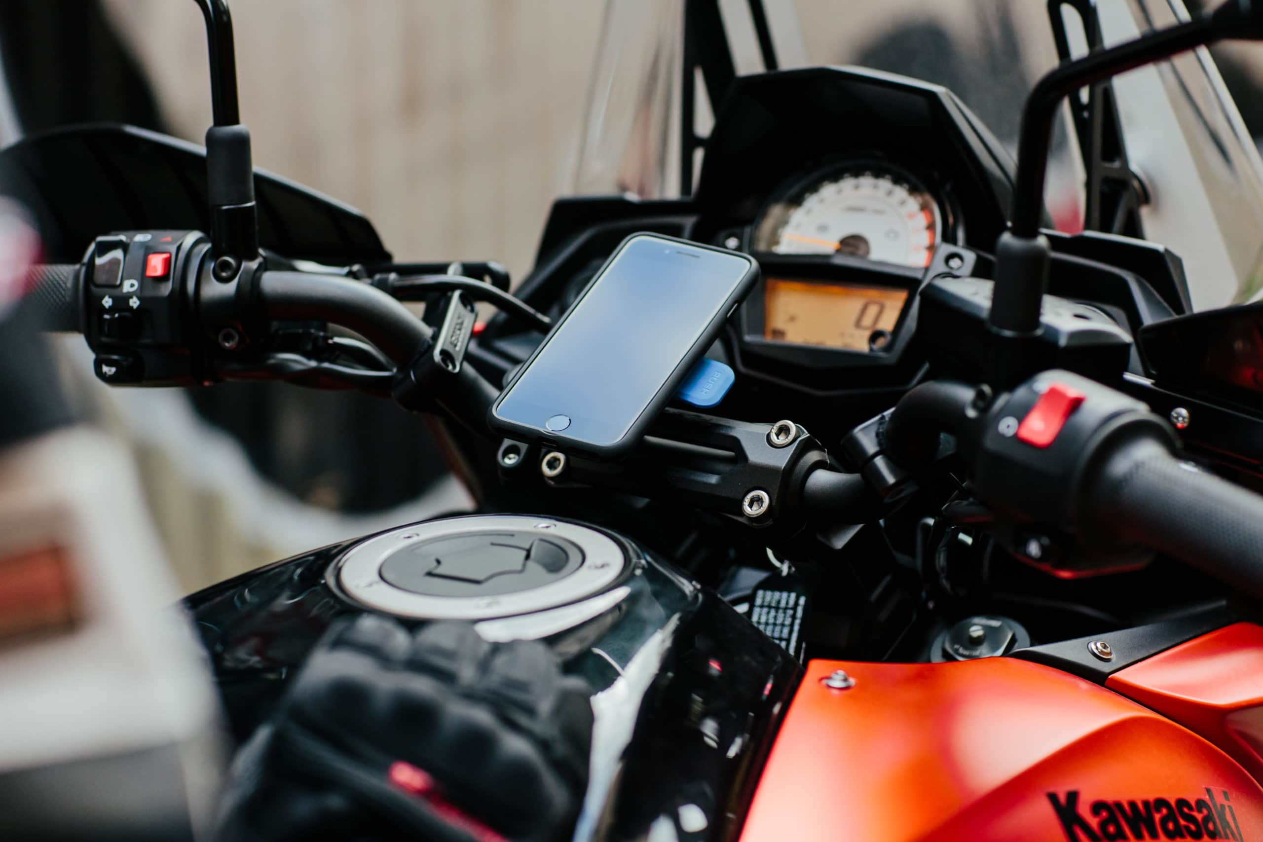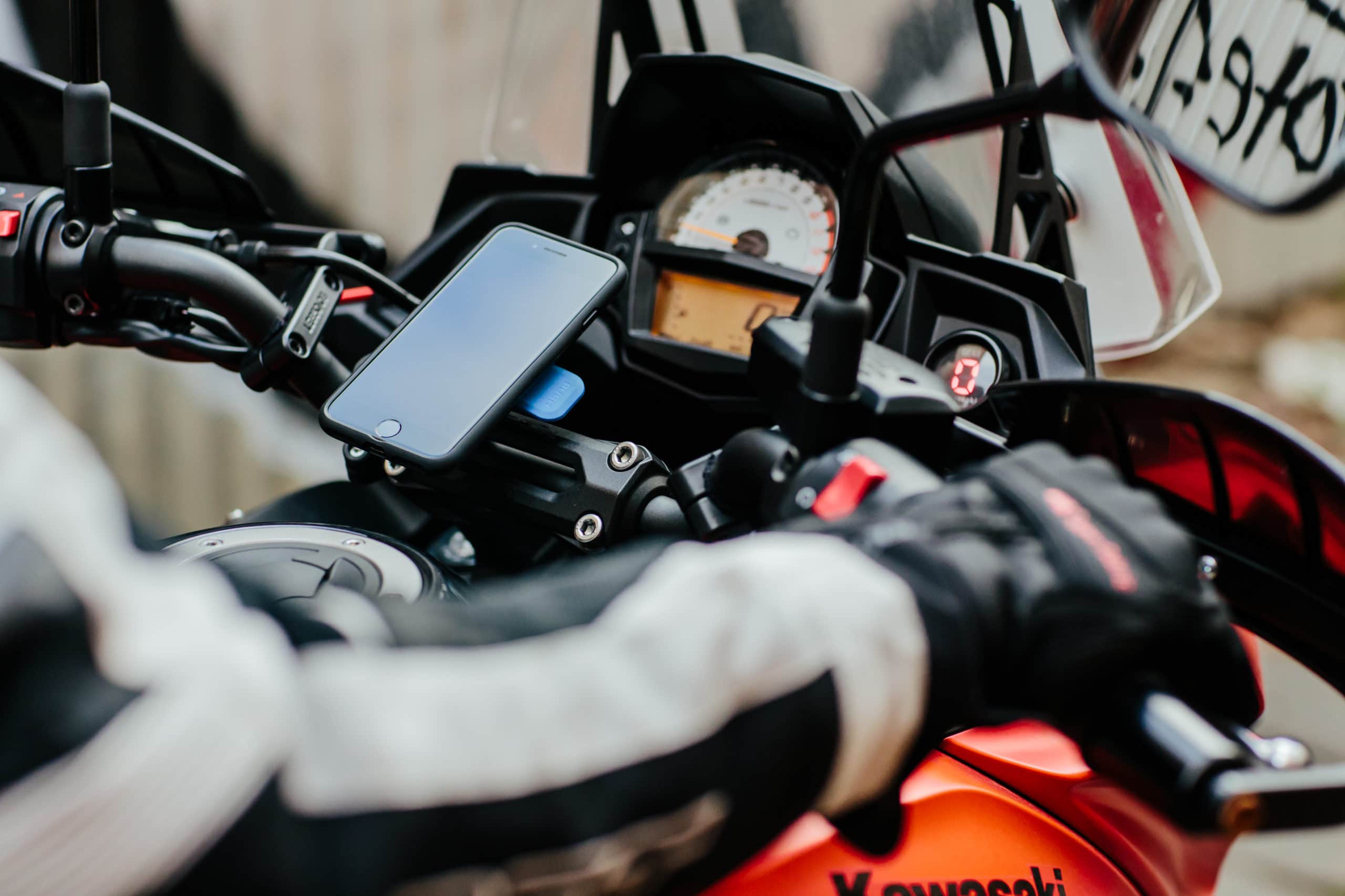Les kits de montage Quad Lock® pour guidon, rétroviseur et fourche pour motos et scooters sont les supports iPhone les plus sûrs et les plus pratiques disponibles.