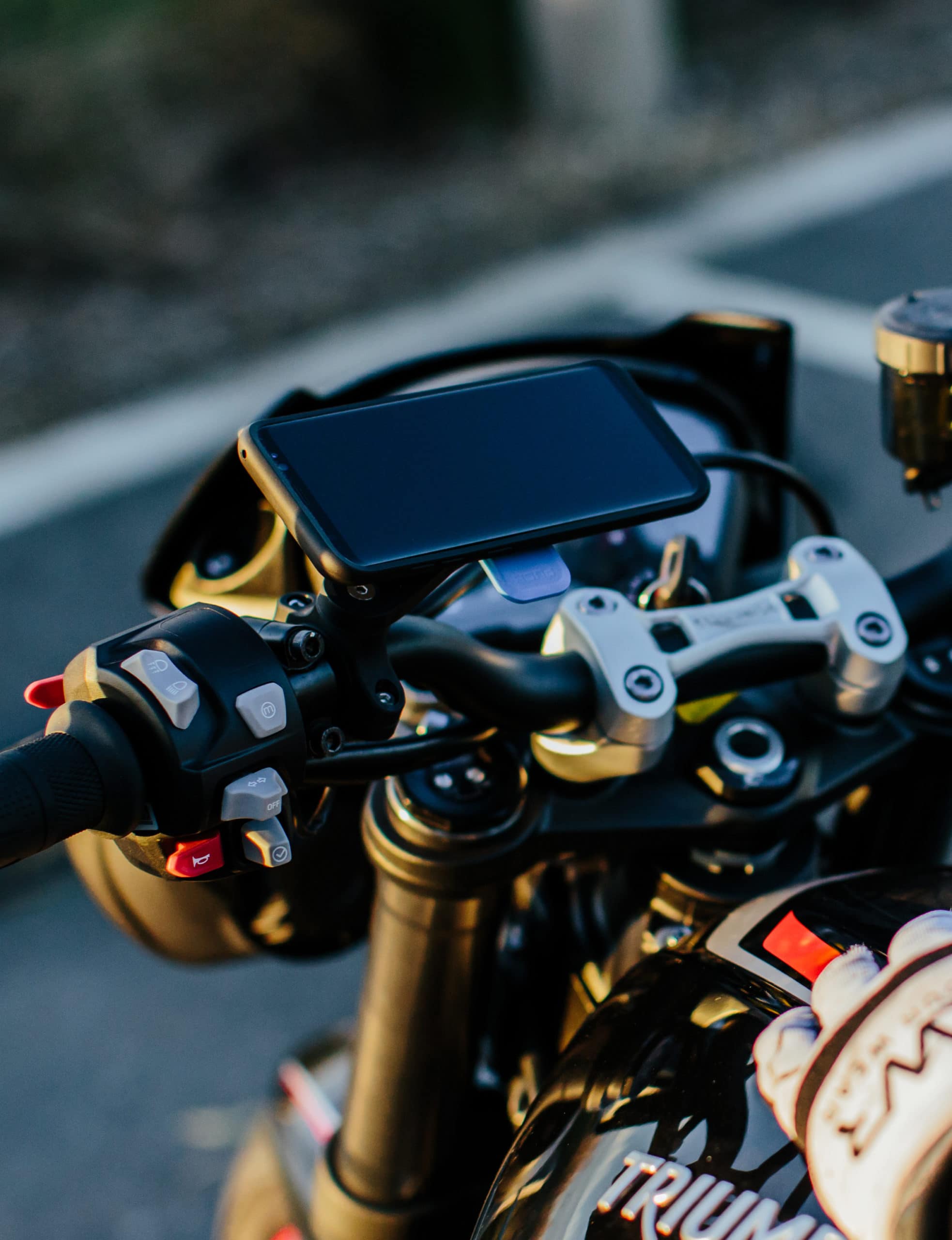 Le verrouillage breveté à deux niveaux signifie que vous pouvez rouler en toute confiance, sachant que votre iPhone restera en sécurité sur votre moto sans avoir besoin de longes, sangles, bandes ou aimants encombrants, quel que soit le terrain.