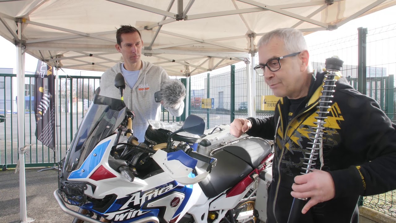 A l’occasion de l’édition du dernier catalogue Touratech, nous avons rendu visite au boss, Yvon, qui en a profité pour nous présenter de belles nouveautés : les cartouches étanches de suspensions (pour Africa Twin), les volumes boosters (pour BMW GS) et un porte bagage extensible.