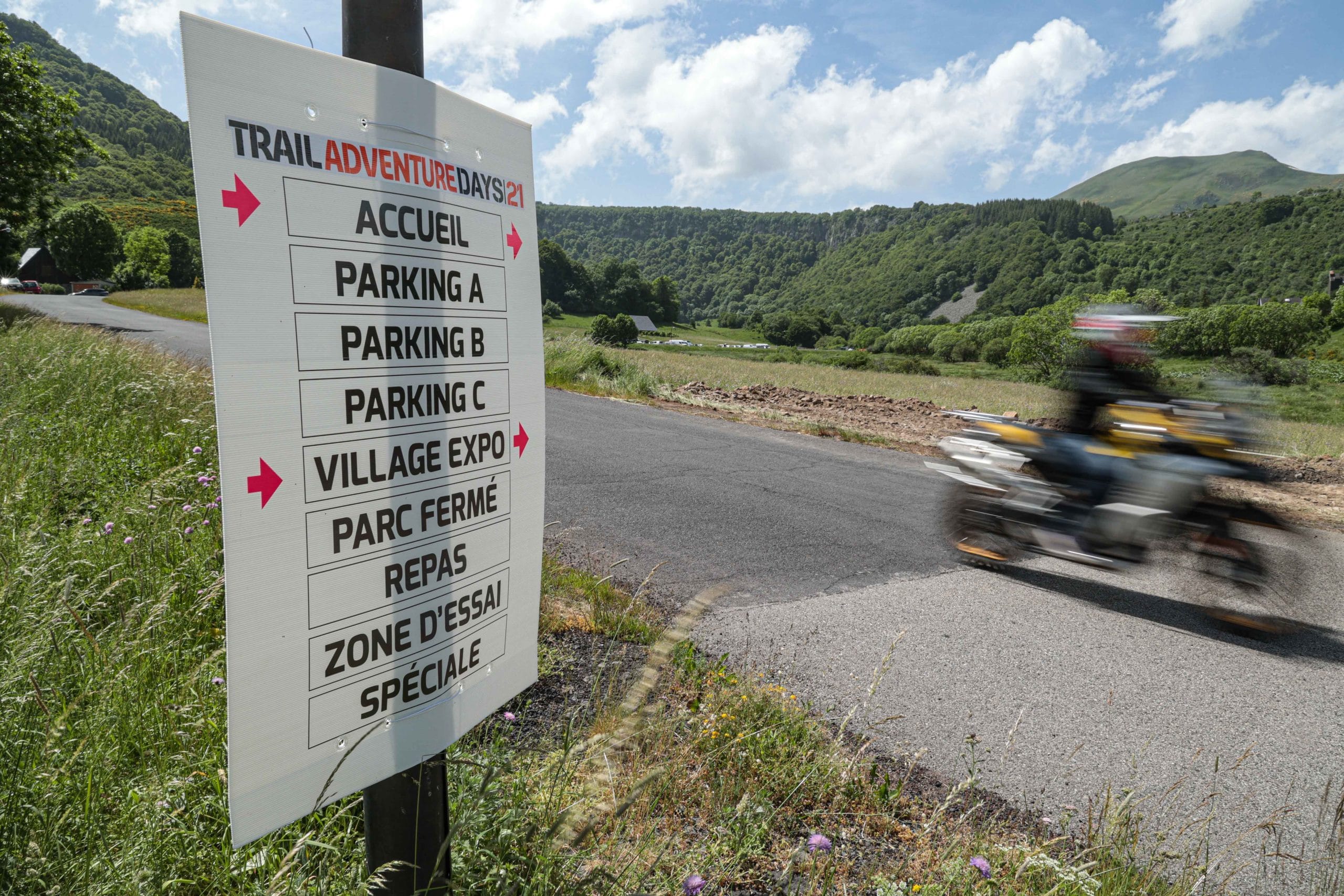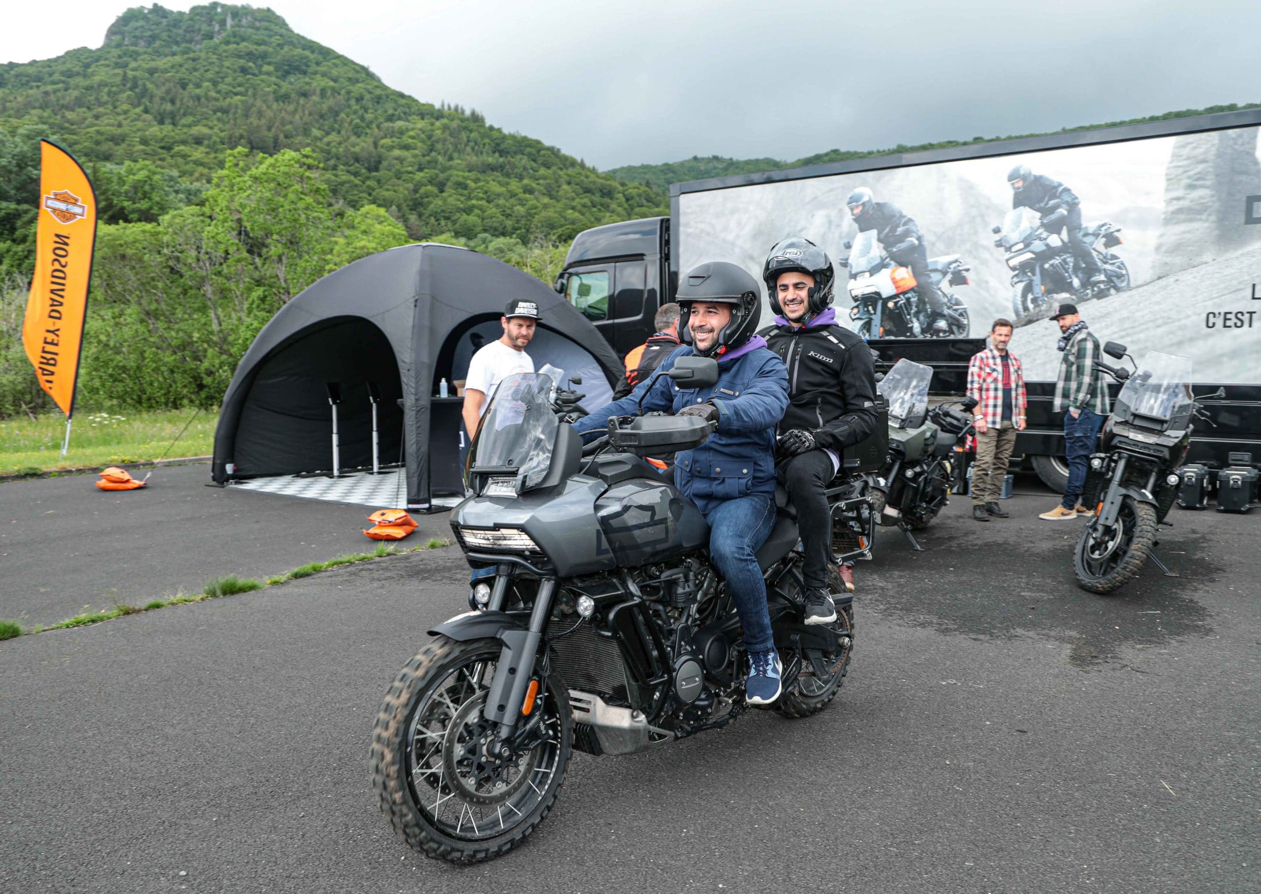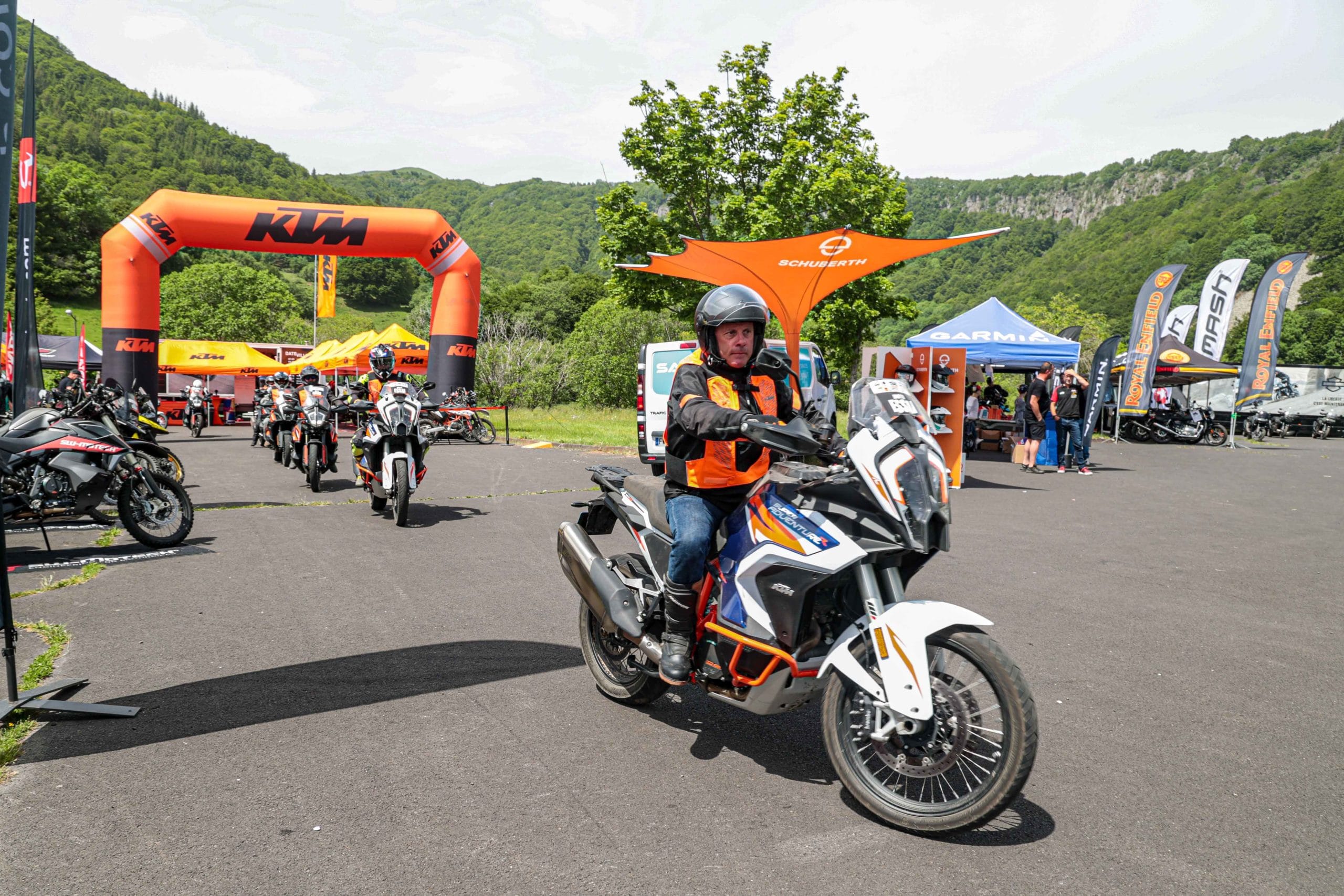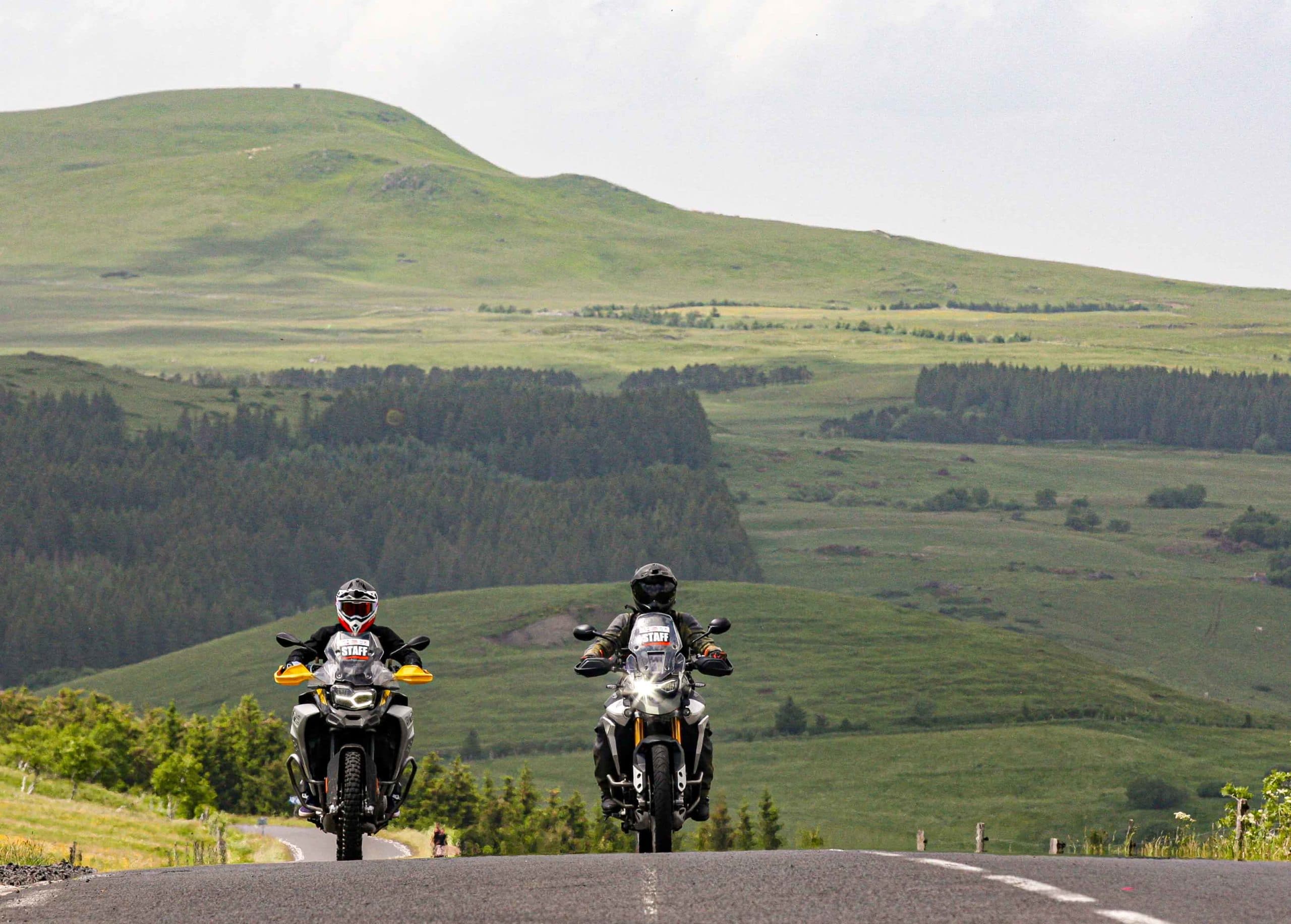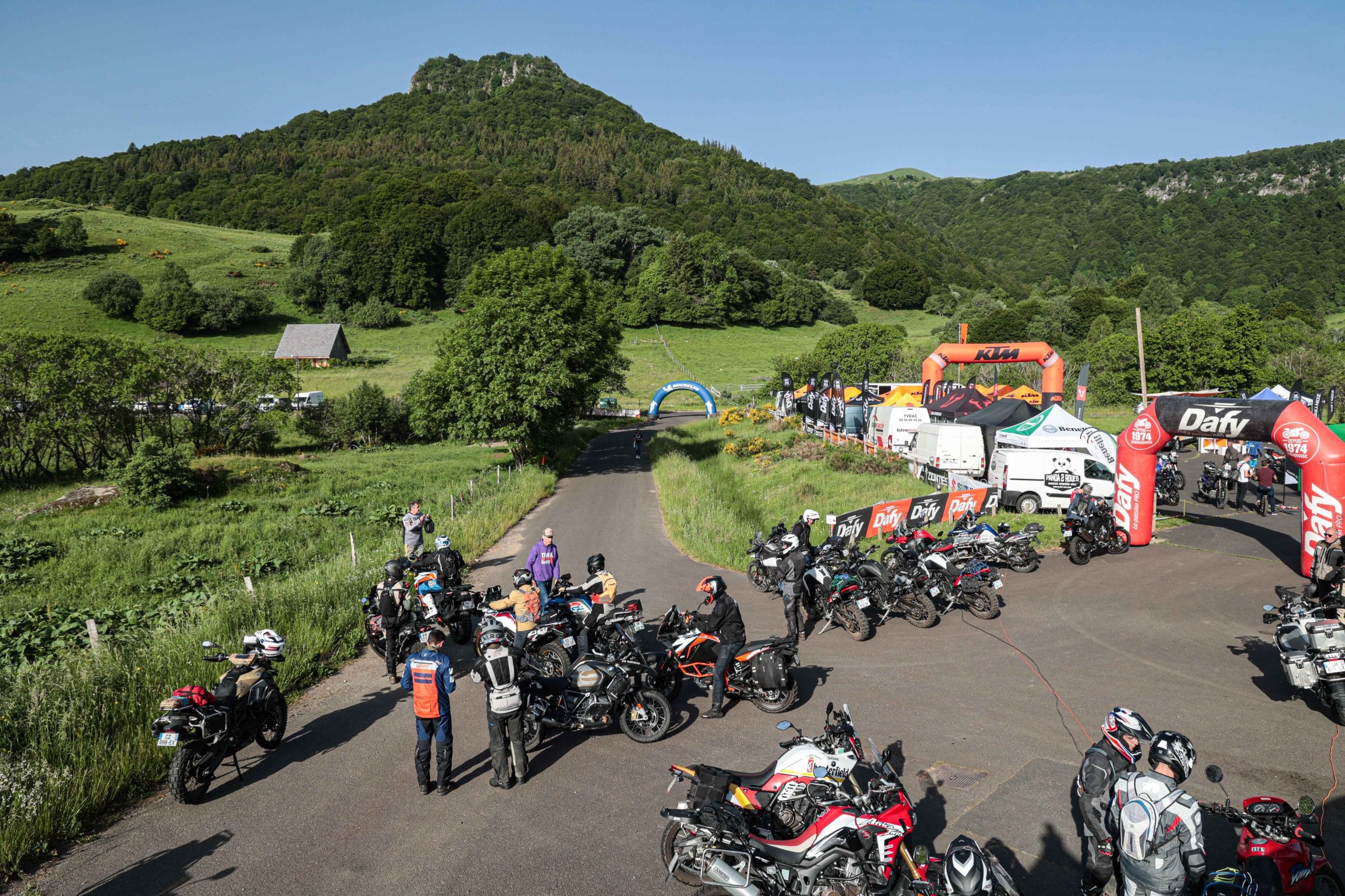Comme l’année dernière, le camp de base était installé au cœur du massif du Sancy, sorte de paradis du trailiste avec ses sublimes routes et ses somptueuses pistes. Il y a eu des essais de motos à gogo (KTM, Suzuki et même Harley-Davidson qui présentait ici la toute nouvelle Pan America 1250 ont tous affichés complet pendant deux jours !), un bon paquet de stands à visiter avec parfois même du matos à tester en live, des challenges ludiques… Gros succès également du côté des stages de pilotage gratuits organisés par nos amis de Petokask qui n’ont pas débandé non plus du week-end. Le plus fort dans l’histoire est que même la météo était au rendez-vous. Faisant fi des alertes orageuses et des tempêtes qui ont sévi un peu partout, les Trail Adventure Days 2021 ont eu le droit à de superbes journées ensoleillées et à des nuits arrosées juste ce qu’il faut pour limiter la poussière dans les chemins du lendemain. Le timing parfait ! Du coup, les grandes randonnées route et off-road tracées par nos équipes locales ont collé la banane à tous les participants, quelle que soit leur expérience car il y en avait vraiment pour tous les niveaux, de l’amateur de macadam au spécialiste de la terre en passant pour le débutant à l’off-road. Le tout, vous l’avez compris, dans un décor de carte postale et une chaleur estivale. Bref, tout le monde en a pris plein les bras et plein les mirettes. Vivement 2022 qu’on remette ça tous ensemble.