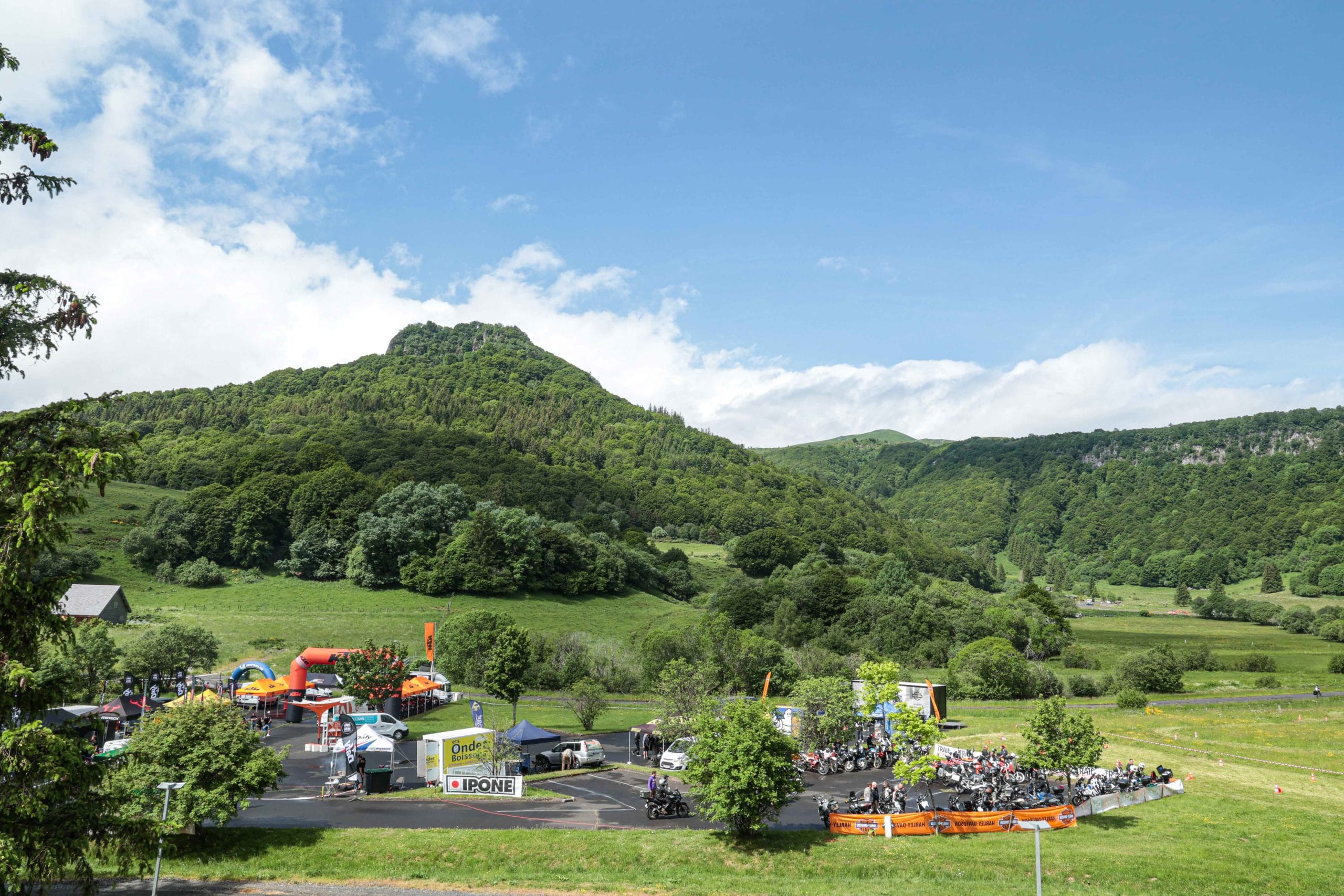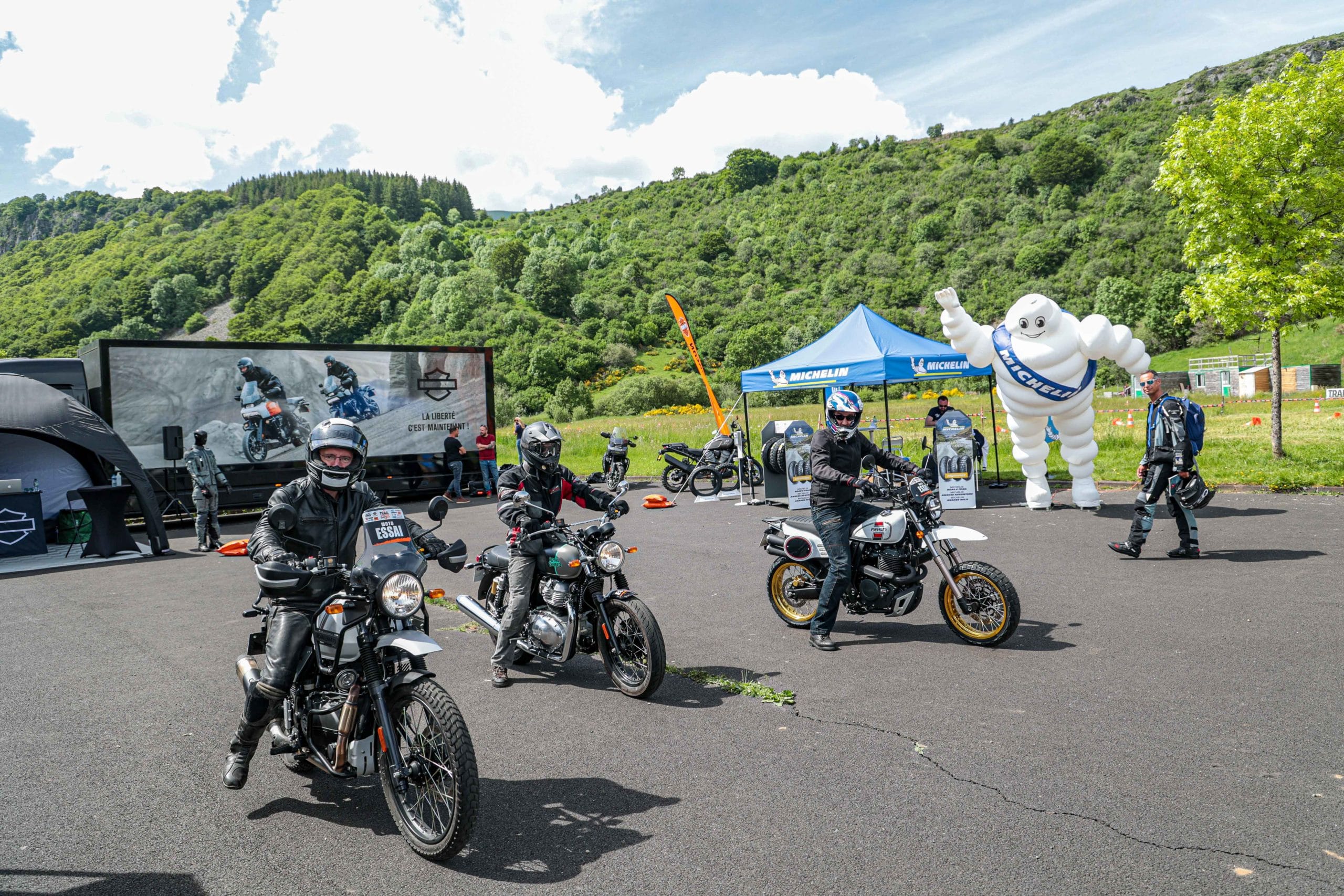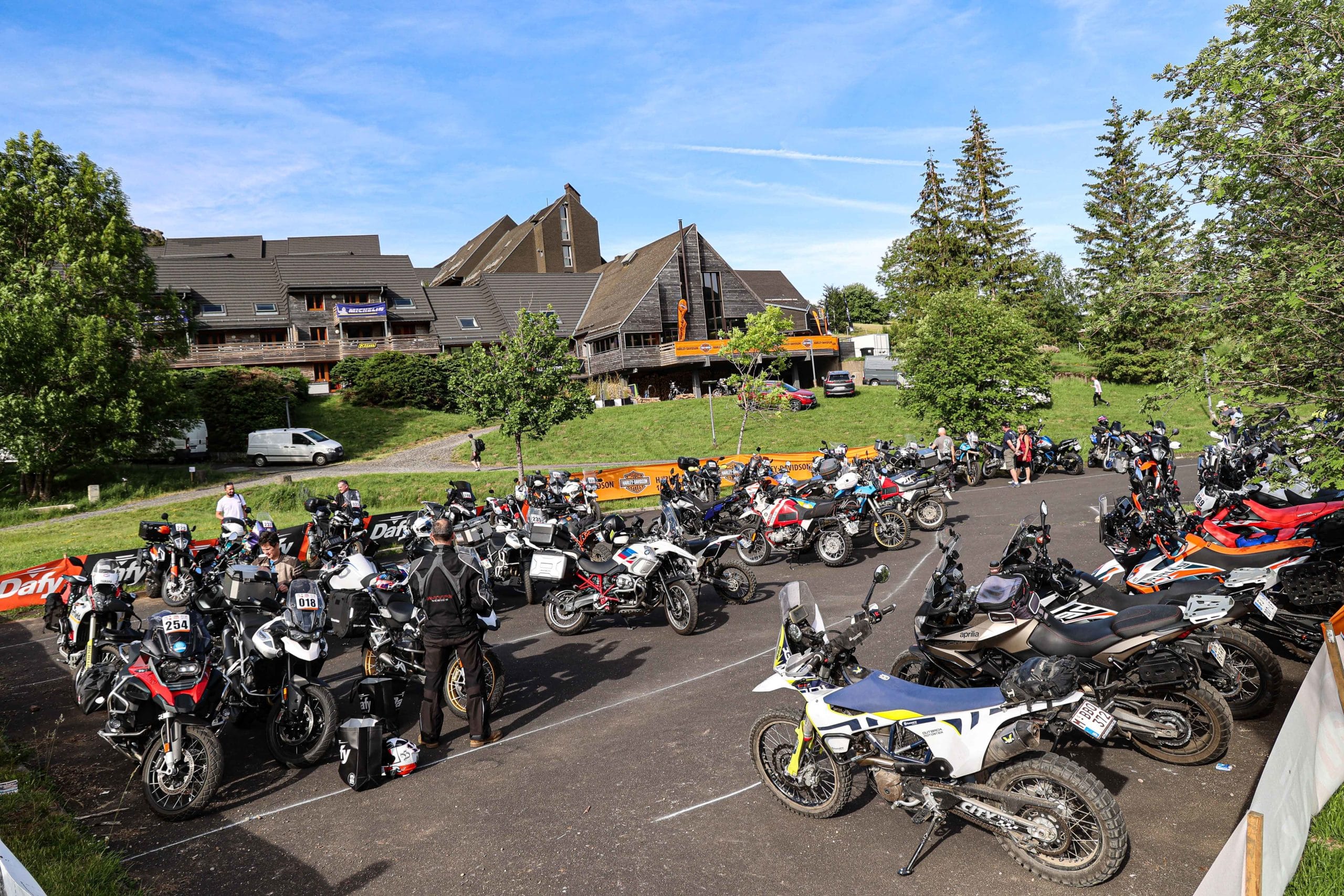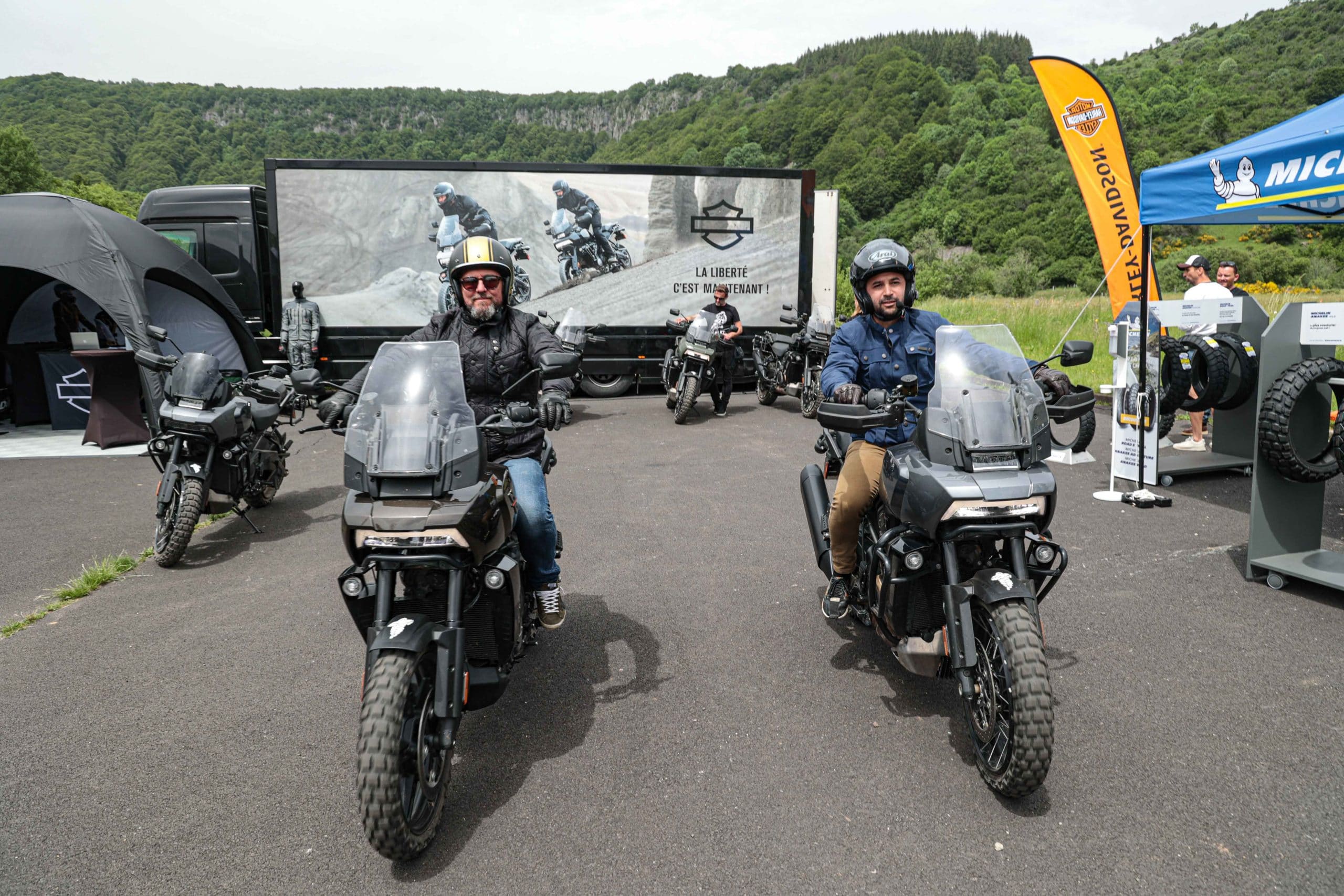 Comme l’année dernière, le camp de base était installé au cœur du massif du Sancy, sorte de paradis du trailiste avec ses sublimes routes et ses somptueuses pistes. Il y a eu des essais de motos à gogo (KTM, Suzuki et même Harley-Davidson qui présentait ici la toute nouvelle Pan America 1250 ont tous affichés complet pendant deux jours !), un bon paquet de stands à visiter avec parfois même du matos à tester en live, des challenges ludiques… Gros succès également du côté des stages de pilotage gratuits organisés par nos amis de Petokask qui n’ont pas débandé non plus du week-end. Le plus fort dans l’histoire est que même la météo était au rendez-vous. Faisant fi des alertes orageuses et des tempêtes qui ont sévi un peu partout, les Trail Adventure Days 2021 ont eu le droit à de superbes journées ensoleillées et à des nuits arrosées juste ce qu’il faut pour limiter la poussière dans les chemins du lendemain. Le timing parfait ! Du coup, les grandes randonnées route et off-road tracées par nos équipes locales ont collé la banane à tous les participants, quelle que soit leur expérience car il y en avait vraiment pour tous les niveaux, de l’amateur de macadam au spécialiste de la terre en passant pour le débutant à l’off-road. Le tout, vous l’avez compris, dans un décor de carte postale et une chaleur estivale. Bref, tout le monde en a pris plein les bras et plein les mirettes. Vivement 2022 qu’on remette ça tous ensemble.