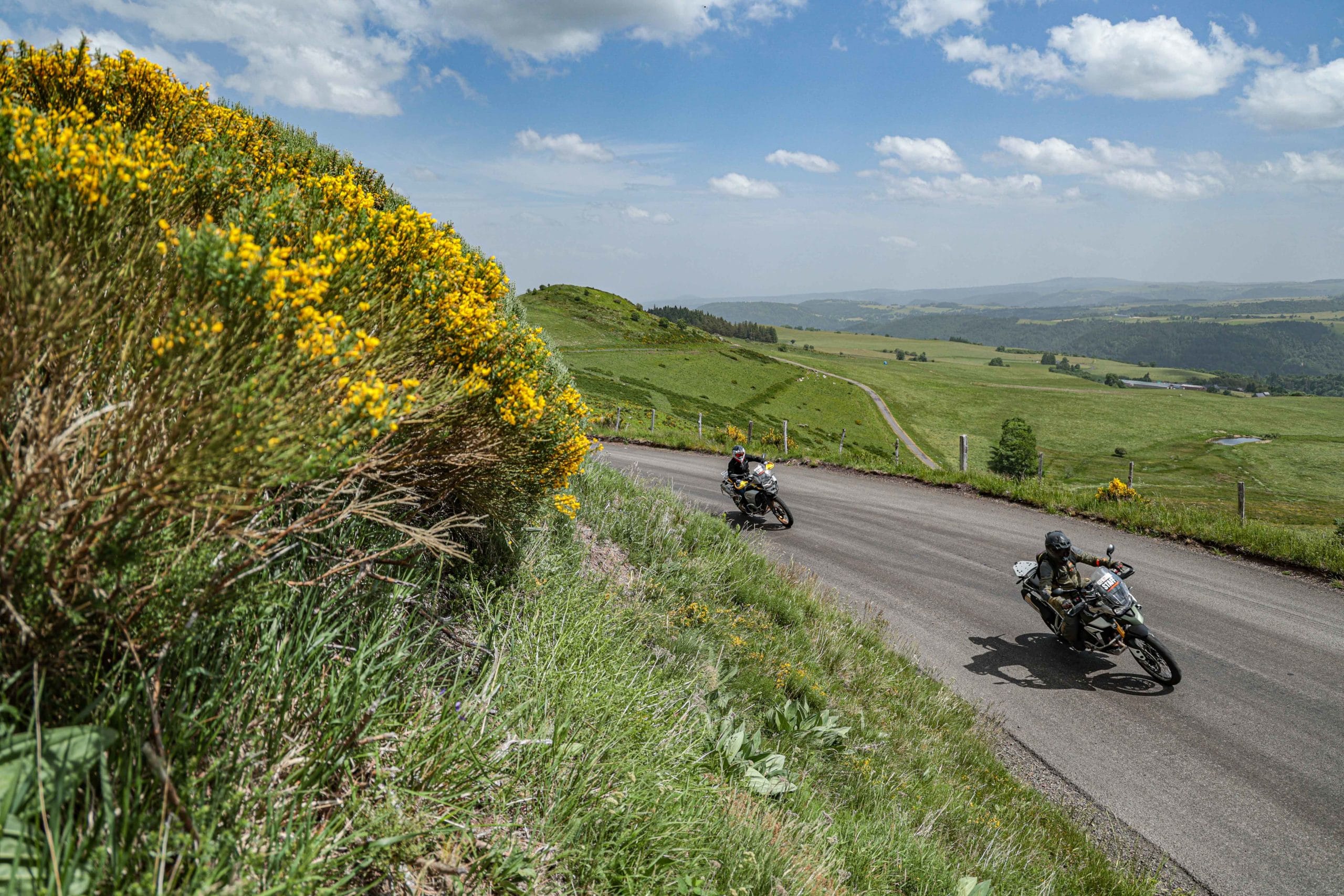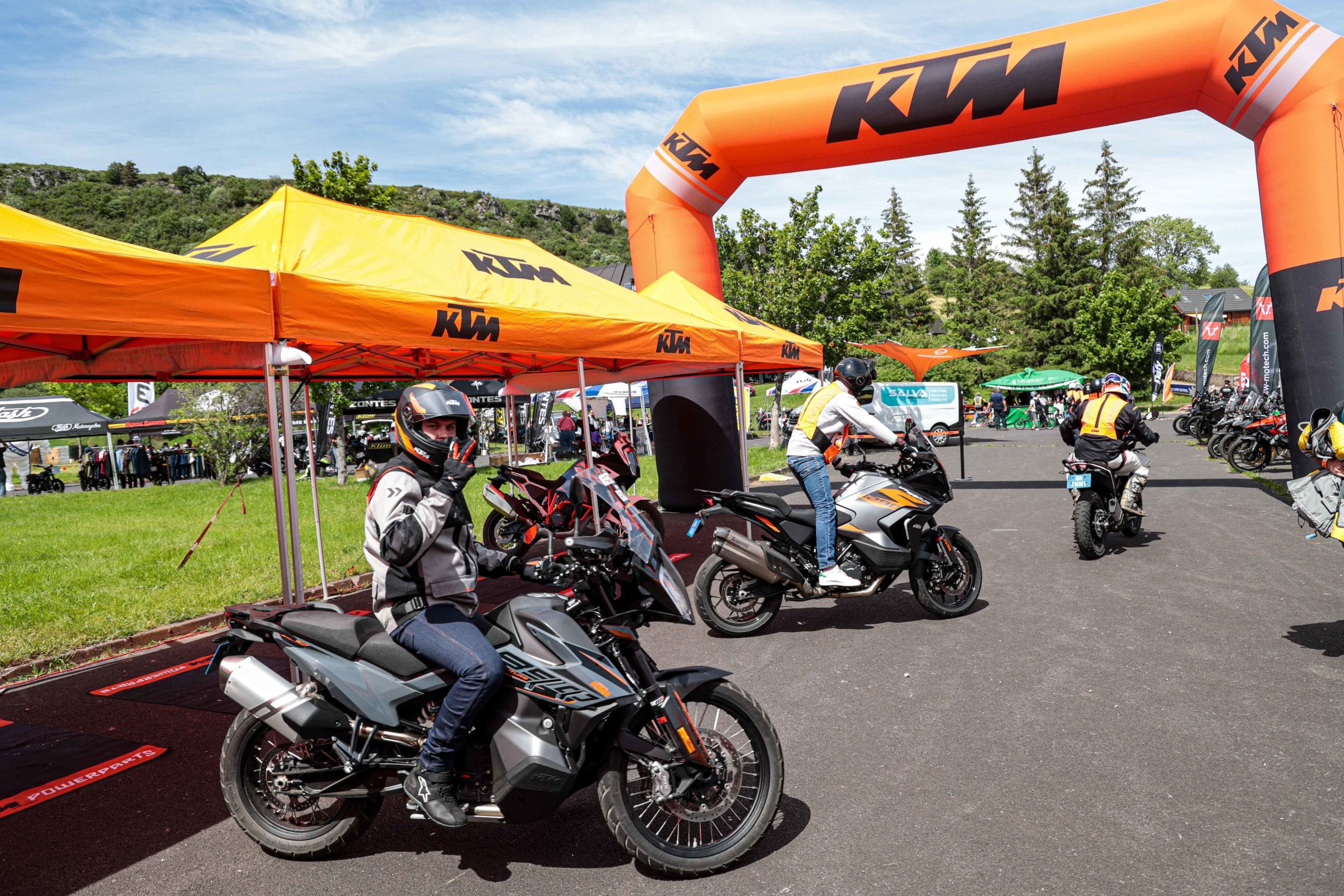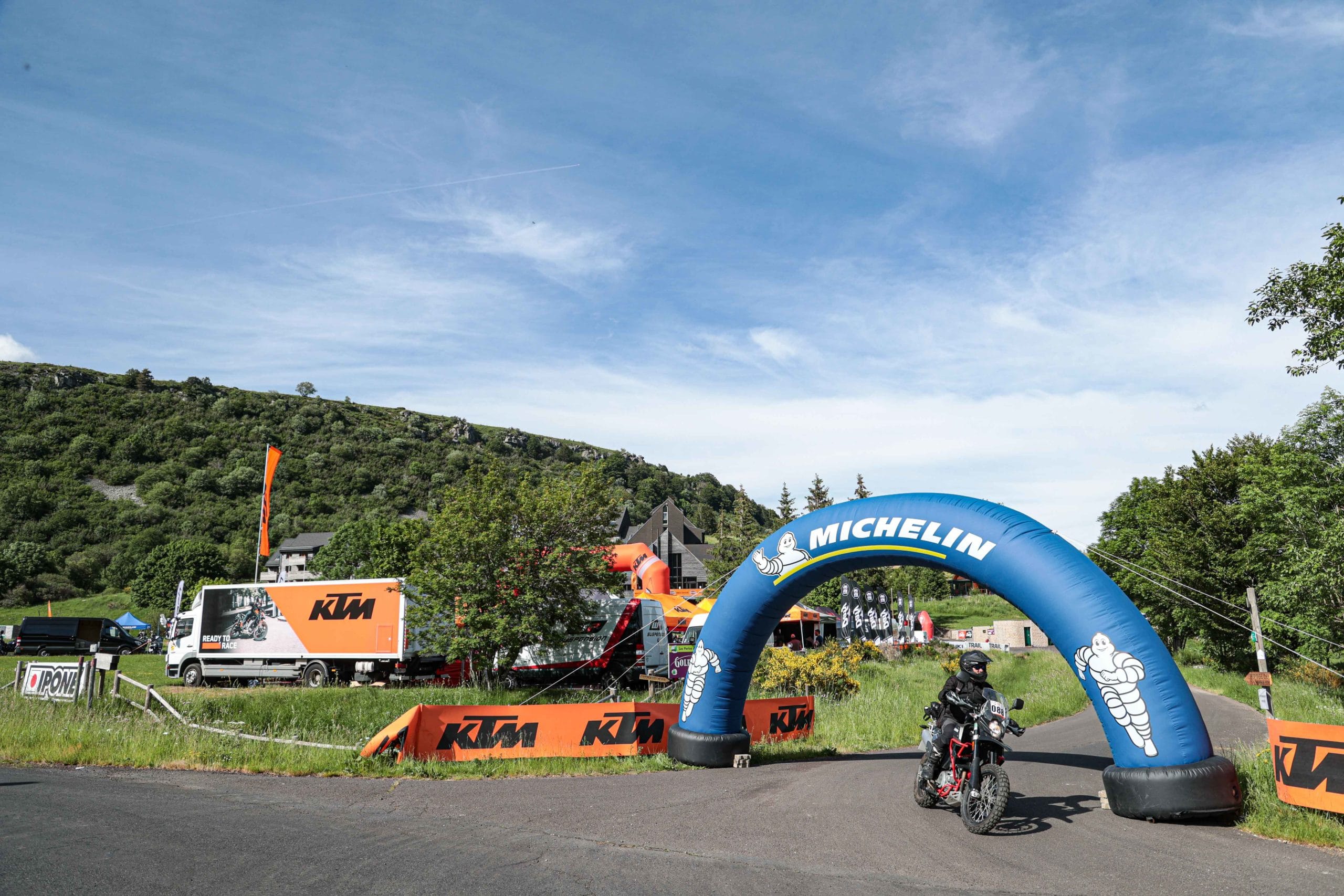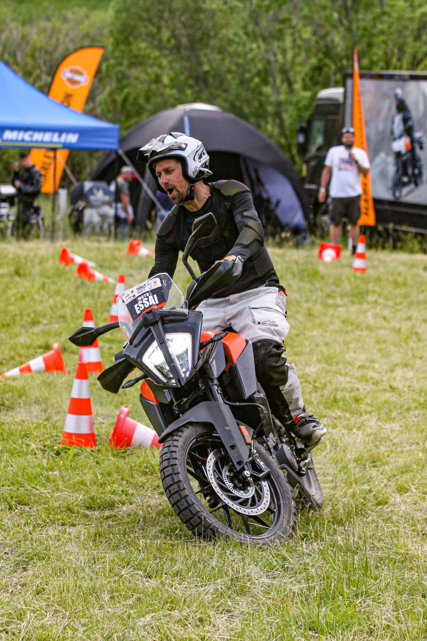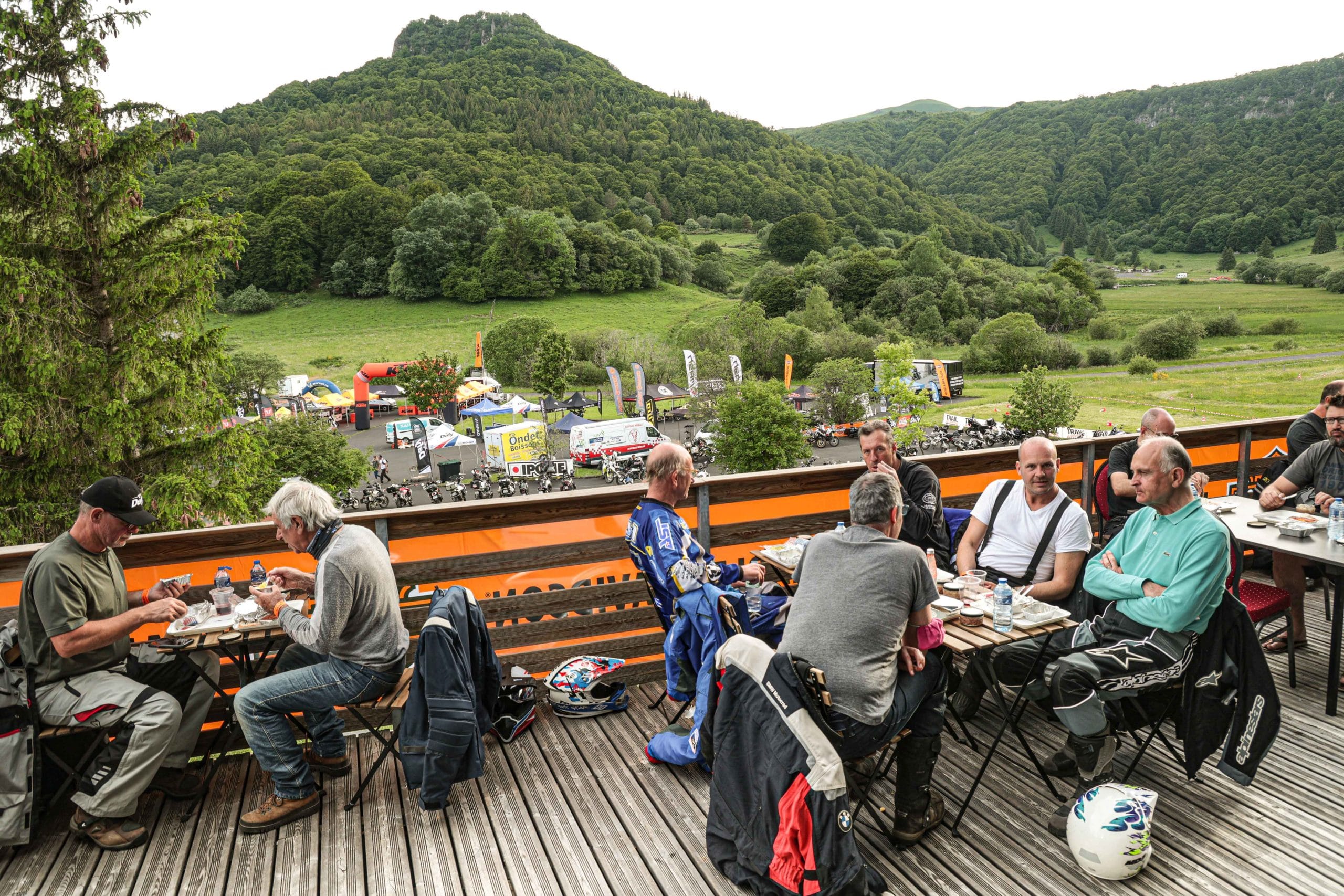 Comme l’année dernière, le camp de base était installé au cœur du massif du Sancy, sorte de paradis du trailiste avec ses sublimes routes et ses somptueuses pistes. Il y a eu des essais de motos à gogo (KTM, Suzuki et même Harley-Davidson qui présentait ici la toute nouvelle Pan America 1250 ont tous affichés complet pendant deux jours !), un bon paquet de stands à visiter avec parfois même du matos à tester en live, des challenges ludiques… Gros succès également du côté des stages de pilotage gratuits organisés par nos amis de Petokask qui n’ont pas débandé non plus du week-end. Le plus fort dans l’histoire est que même la météo était au rendez-vous. Faisant fi des alertes orageuses et des tempêtes qui ont sévi un peu partout, les Trail Adventure Days 2021 ont eu le droit à de superbes journées ensoleillées et à des nuits arrosées juste ce qu’il faut pour limiter la poussière dans les chemins du lendemain. Le timing parfait ! Du coup, les grandes randonnées route et off-road tracées par nos équipes locales ont collé la banane à tous les participants, quelle que soit leur expérience car il y en avait vraiment pour tous les niveaux, de l’amateur de macadam au spécialiste de la terre en passant pour le débutant à l’off-road. Le tout, vous l’avez compris, dans un décor de carte postale et une chaleur estivale. Bref, tout le monde en a pris plein les bras et plein les mirettes. Vivement 2022 qu’on remette ça tous ensemble.