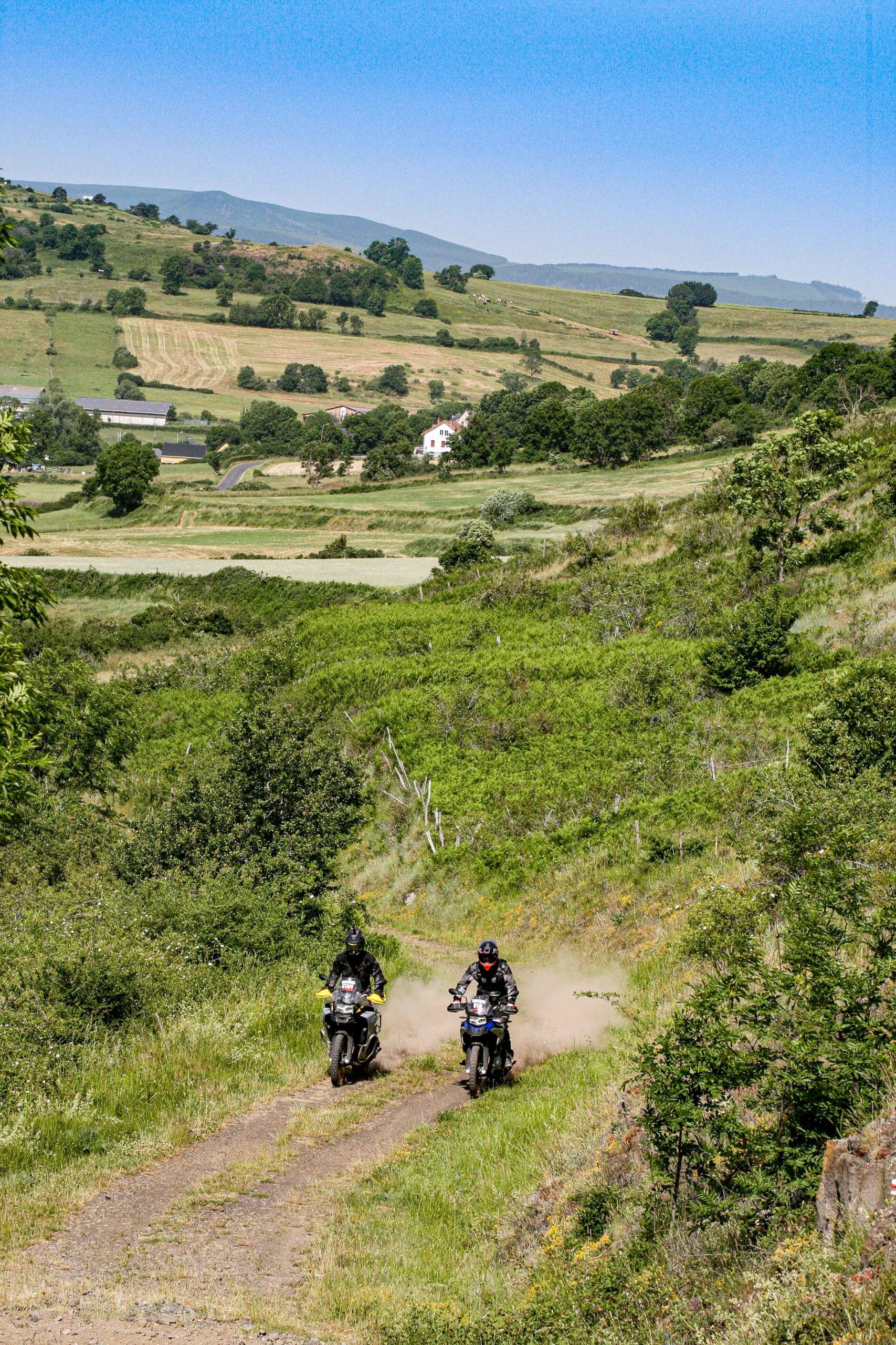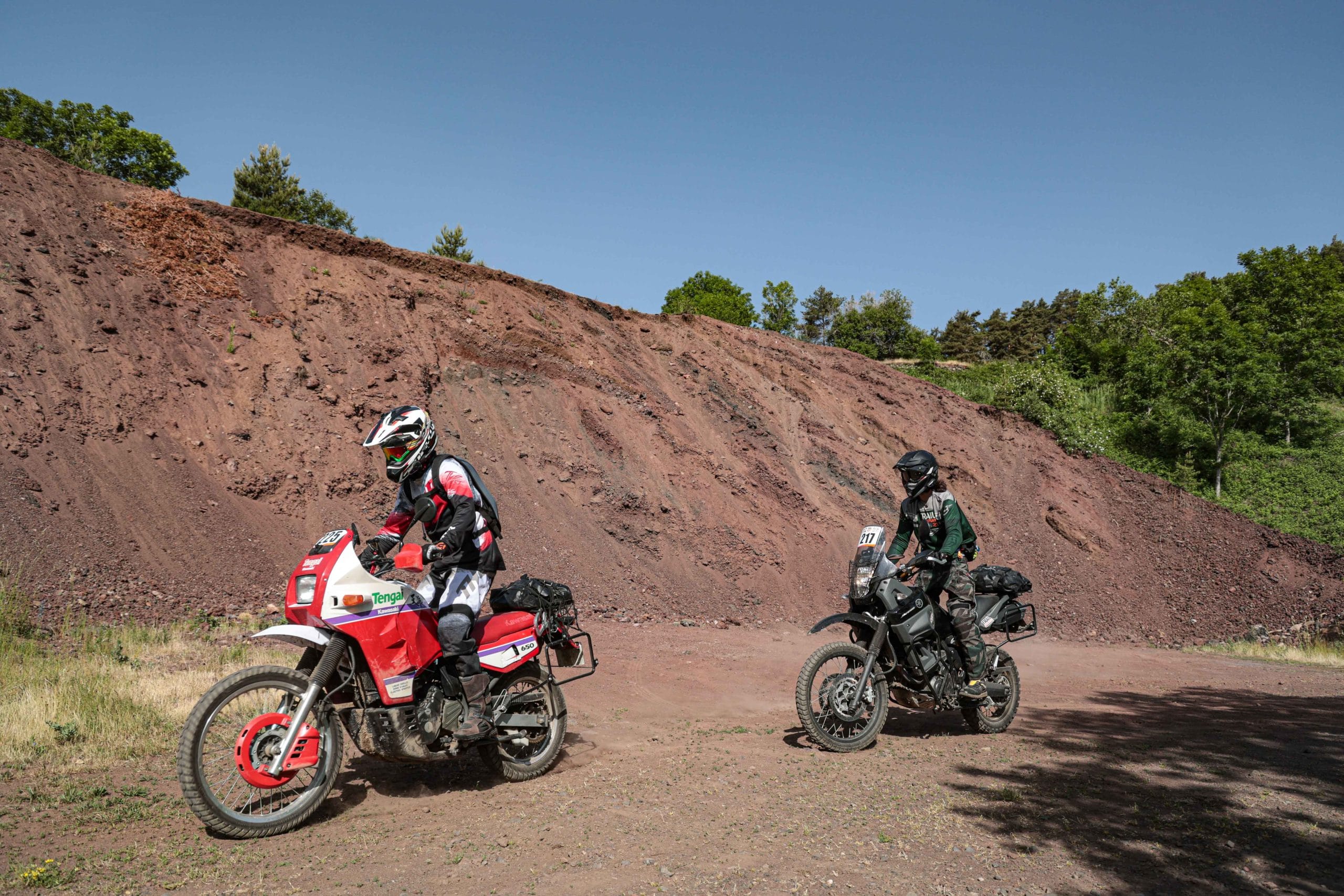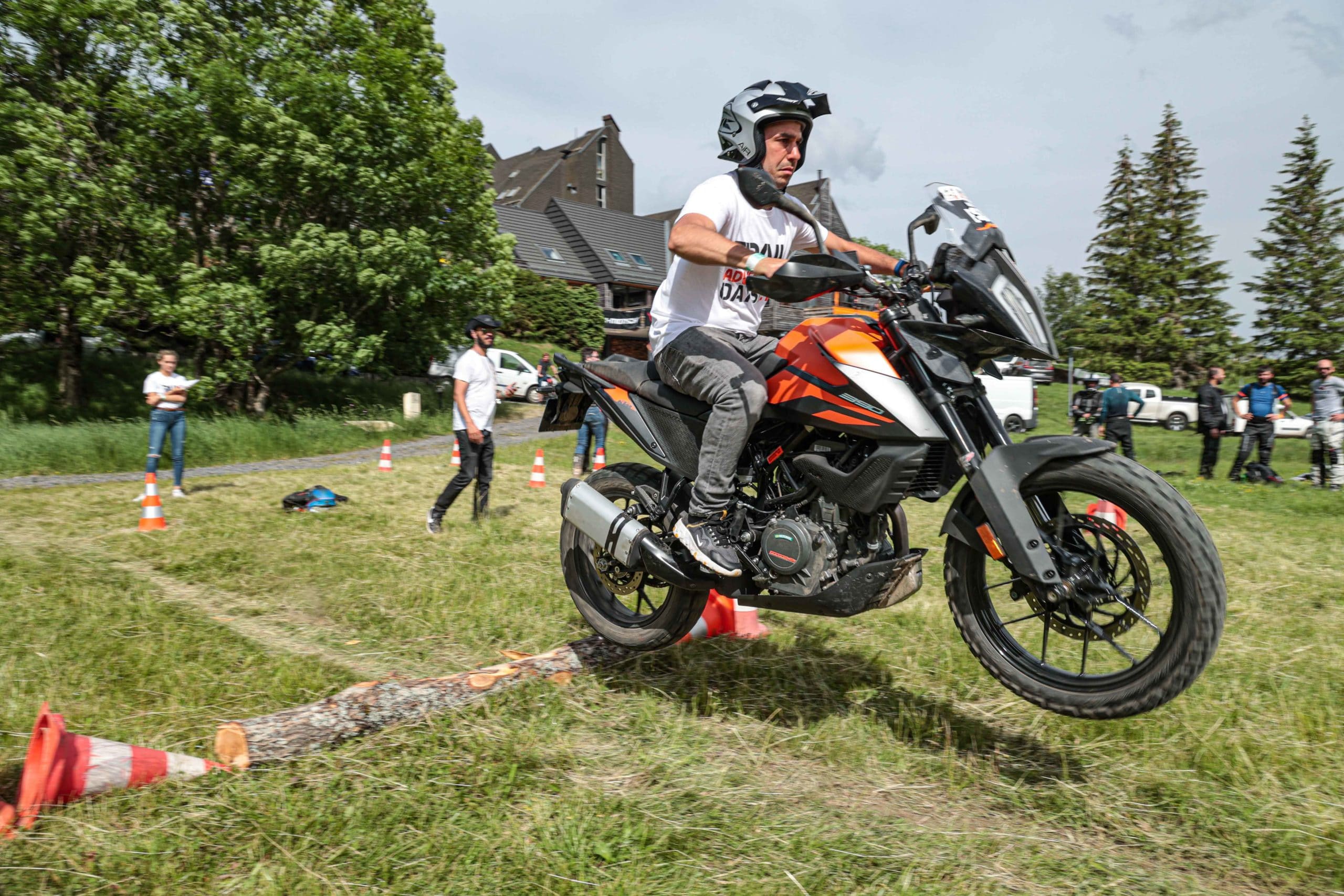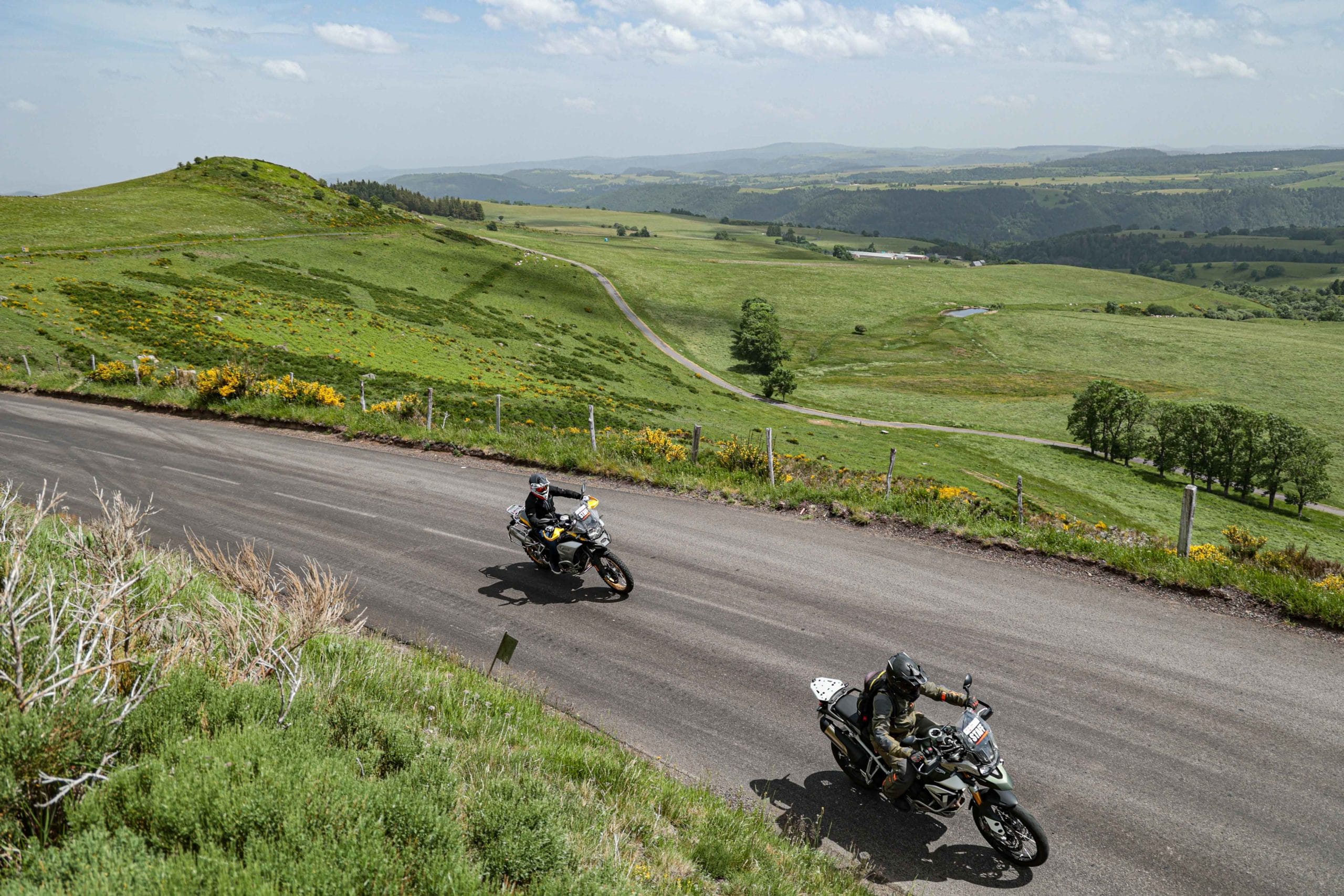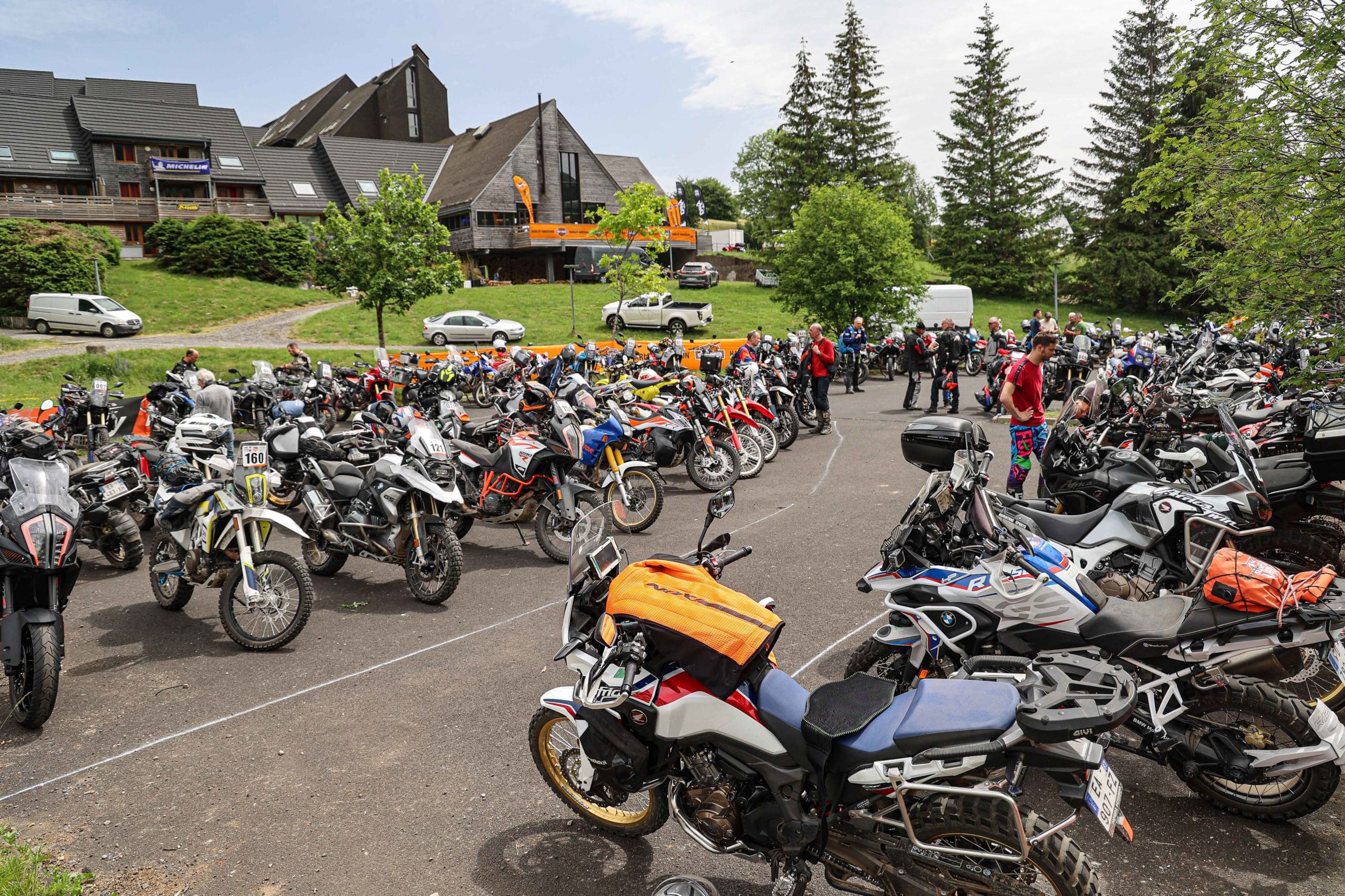 Comme l’année dernière, le camp de base était installé au cœur du massif du Sancy, sorte de paradis du trailiste avec ses sublimes routes et ses somptueuses pistes. Il y a eu des essais de motos à gogo (KTM, Suzuki et même Harley-Davidson qui présentait ici la toute nouvelle Pan America 1250 ont tous affichés complet pendant deux jours !), un bon paquet de stands à visiter avec parfois même du matos à tester en live, des challenges ludiques… Gros succès également du côté des stages de pilotage gratuits organisés par nos amis de Petokask qui n’ont pas débandé non plus du week-end. Le plus fort dans l’histoire est que même la météo était au rendez-vous. Faisant fi des alertes orageuses et des tempêtes qui ont sévi un peu partout, les Trail Adventure Days 2021 ont eu le droit à de superbes journées ensoleillées et à des nuits arrosées juste ce qu’il faut pour limiter la poussière dans les chemins du lendemain. Le timing parfait ! Du coup, les grandes randonnées route et off-road tracées par nos équipes locales ont collé la banane à tous les participants, quelle que soit leur expérience car il y en avait vraiment pour tous les niveaux, de l’amateur de macadam au spécialiste de la terre en passant pour le débutant à l’off-road. Le tout, vous l’avez compris, dans un décor de carte postale et une chaleur estivale. Bref, tout le monde en a pris plein les bras et plein les mirettes. Vivement 2022 qu’on remette ça tous ensemble.