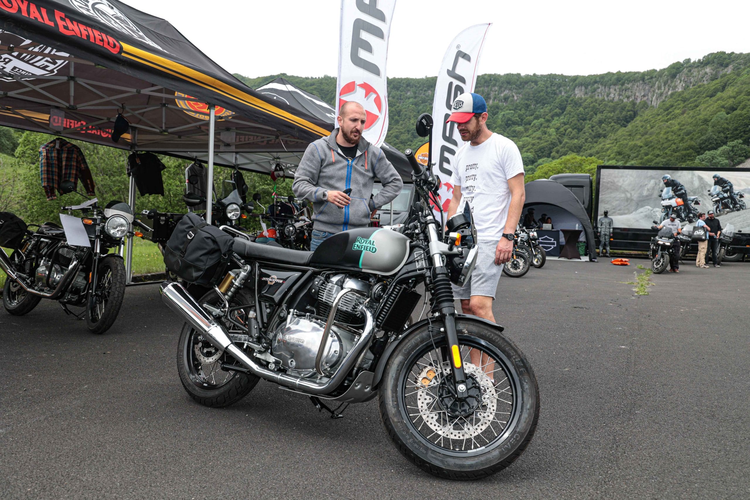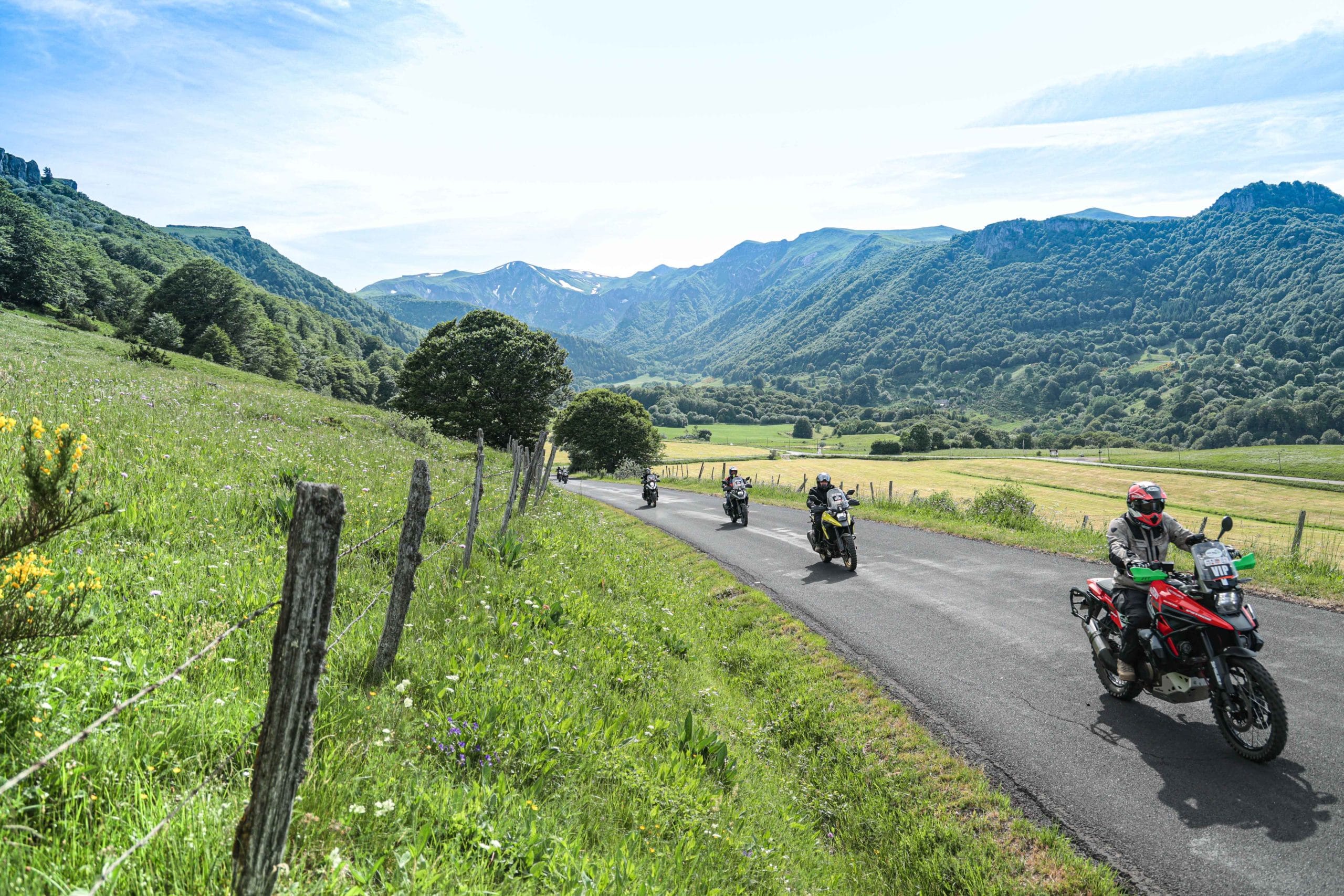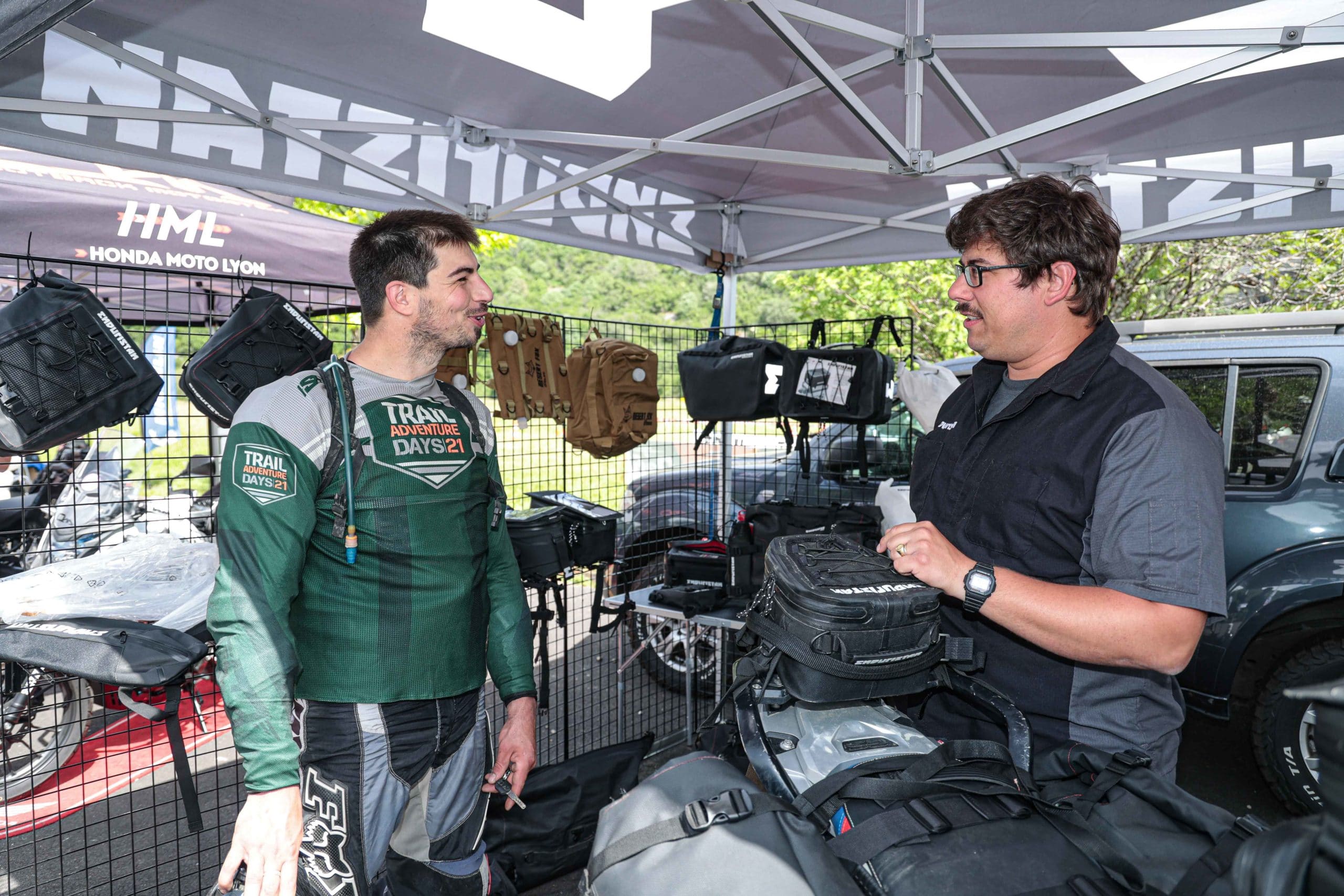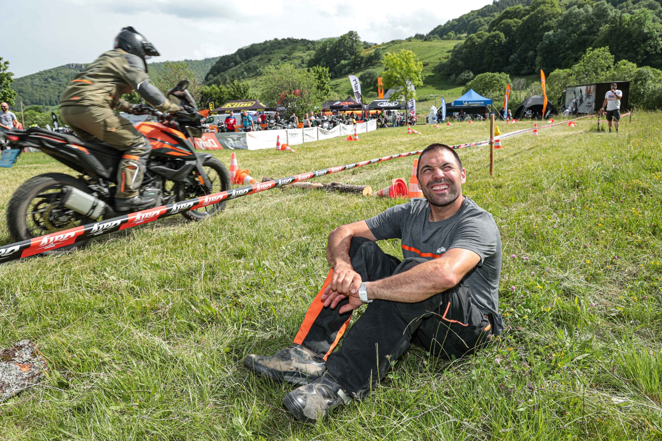 Comme l’année dernière, le camp de base était installé au cœur du massif du Sancy, sorte de paradis du trailiste avec ses sublimes routes et ses somptueuses pistes. Il y a eu des essais de motos à gogo (KTM, Suzuki et même Harley-Davidson qui présentait ici la toute nouvelle Pan America 1250 ont tous affichés complet pendant deux jours !), un bon paquet de stands à visiter avec parfois même du matos à tester en live, des challenges ludiques… Gros succès également du côté des stages de pilotage gratuits organisés par nos amis de Petokask qui n’ont pas débandé non plus du week-end. Le plus fort dans l’histoire est que même la météo était au rendez-vous. Faisant fi des alertes orageuses et des tempêtes qui ont sévi un peu partout, les Trail Adventure Days 2021 ont eu le droit à de superbes journées ensoleillées et à des nuits arrosées juste ce qu’il faut pour limiter la poussière dans les chemins du lendemain. Le timing parfait ! Du coup, les grandes randonnées route et off-road tracées par nos équipes locales ont collé la banane à tous les participants, quelle que soit leur expérience car il y en avait vraiment pour tous les niveaux, de l’amateur de macadam au spécialiste de la terre en passant pour le débutant à l’off-road. Le tout, vous l’avez compris, dans un décor de carte postale et une chaleur estivale. Bref, tout le monde en a pris plein les bras et plein les mirettes. Vivement 2022 qu’on remette ça tous ensemble.