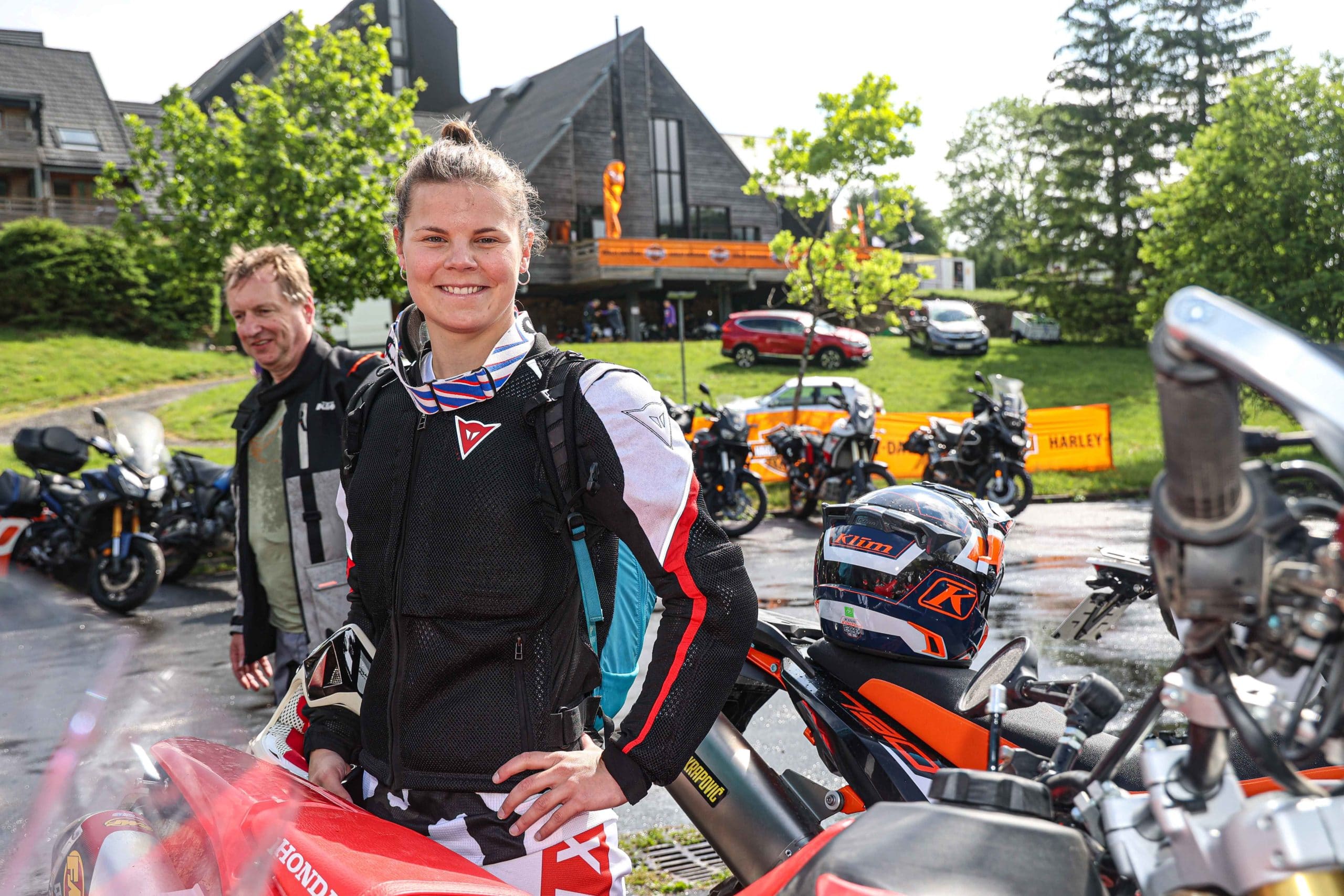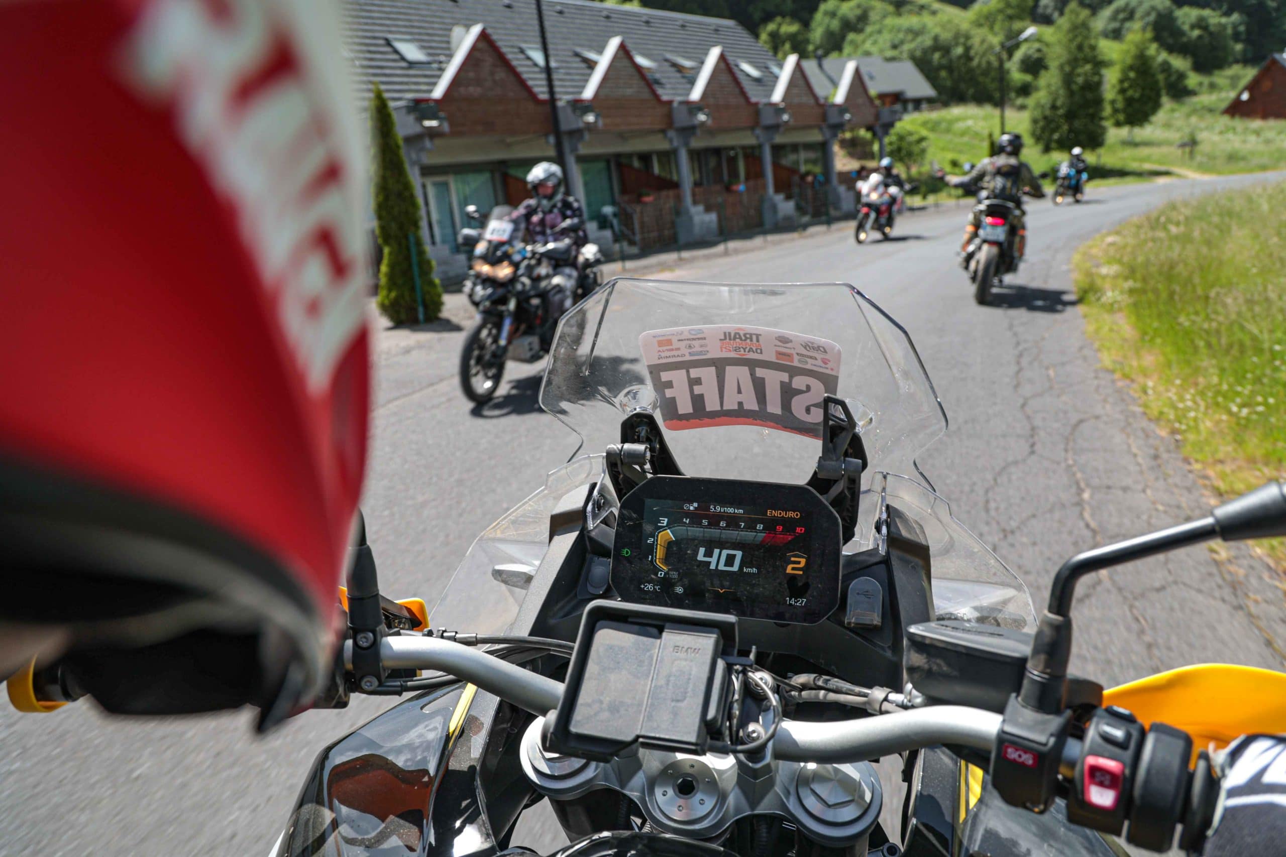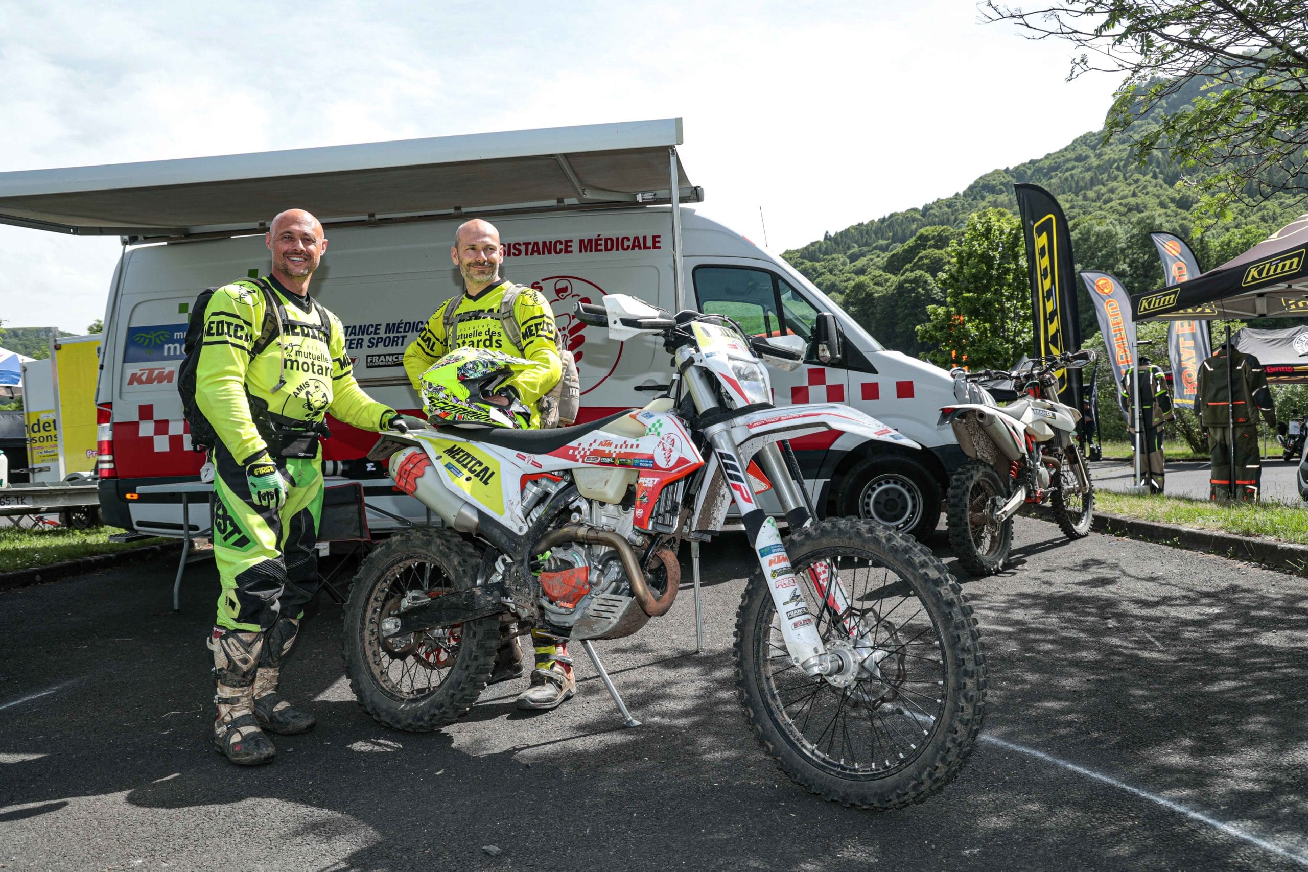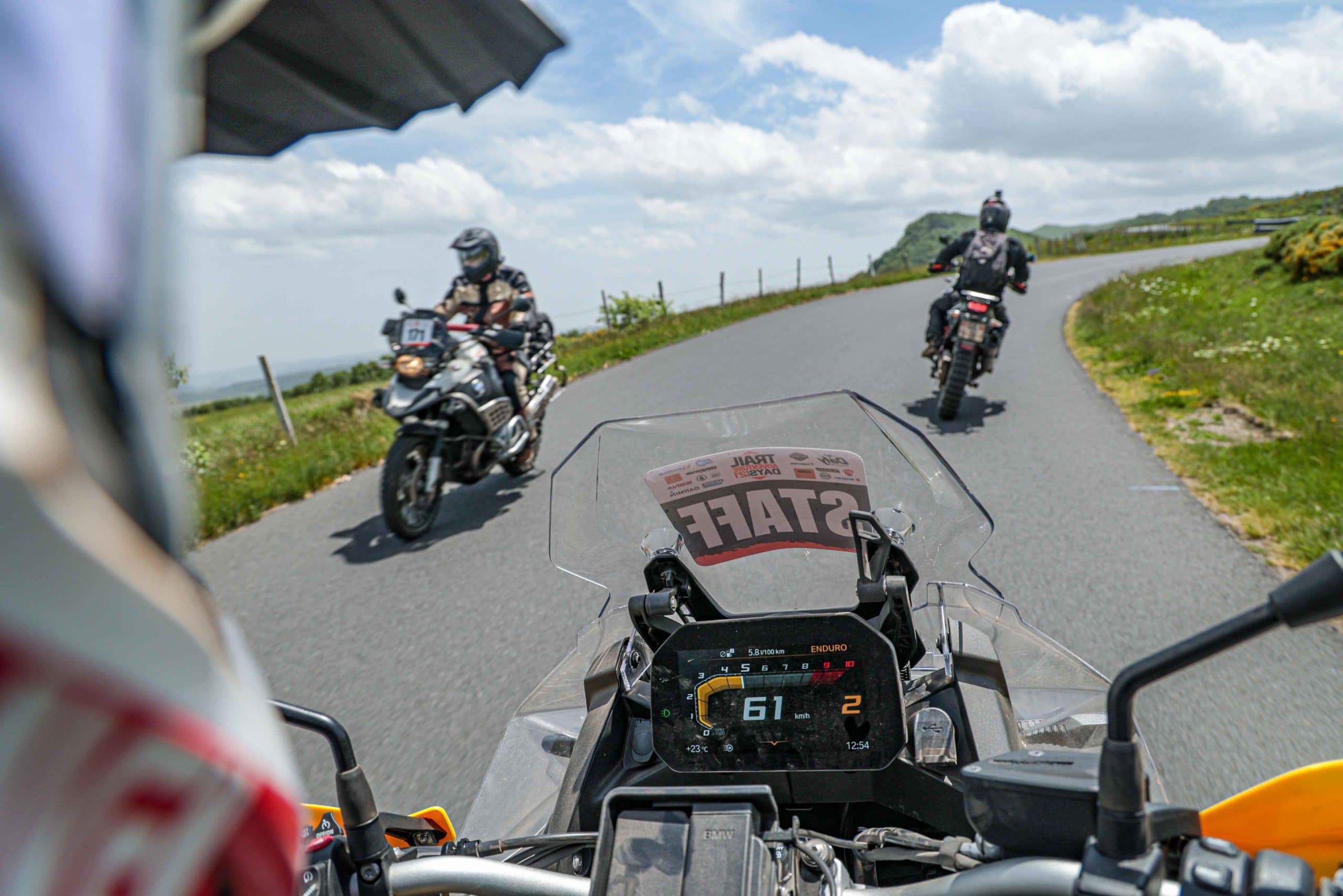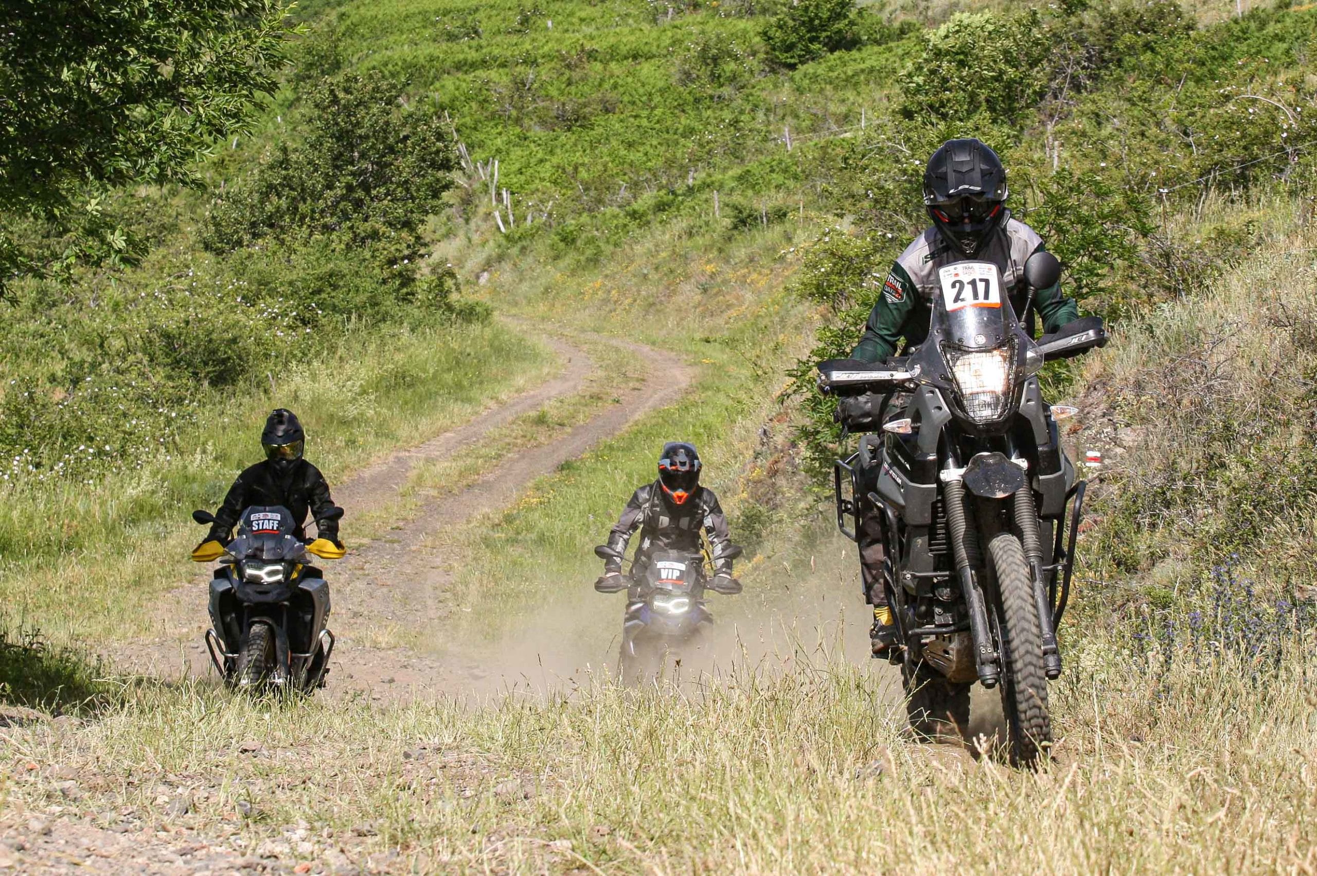Comme l’année dernière, le camp de base était installé au cœur du massif du Sancy, sorte de paradis du trailiste avec ses sublimes routes et ses somptueuses pistes. Il y a eu des essais de motos à gogo (KTM, Suzuki et même Harley-Davidson qui présentait ici la toute nouvelle Pan America 1250 ont tous affichés complet pendant deux jours !), un bon paquet de stands à visiter avec parfois même du matos à tester en live, des challenges ludiques… Gros succès également du côté des stages de pilotage gratuits organisés par nos amis de Petokask qui n’ont pas débandé non plus du week-end. Le plus fort dans l’histoire est que même la météo était au rendez-vous. Faisant fi des alertes orageuses et des tempêtes qui ont sévi un peu partout, les Trail Adventure Days 2021 ont eu le droit à de superbes journées ensoleillées et à des nuits arrosées juste ce qu’il faut pour limiter la poussière dans les chemins du lendemain. Le timing parfait ! Du coup, les grandes randonnées route et off-road tracées par nos équipes locales ont collé la banane à tous les participants, quelle que soit leur expérience car il y en avait vraiment pour tous les niveaux, de l’amateur de macadam au spécialiste de la terre en passant pour le débutant à l’off-road. Le tout, vous l’avez compris, dans un décor de carte postale et une chaleur estivale. Bref, tout le monde en a pris plein les bras et plein les mirettes. Vivement 2022 qu’on remette ça tous ensemble.
