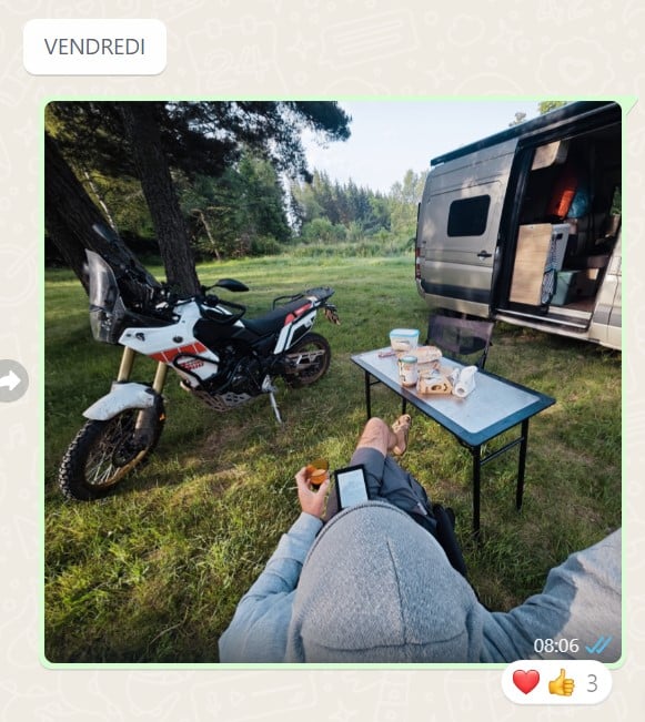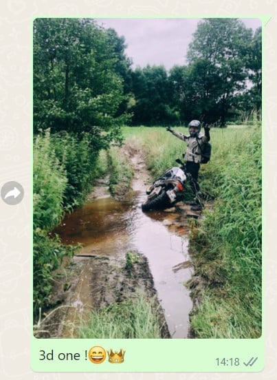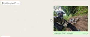 Trail Adventure Days 2024Au premier passage hors-route un peu champêtre – selfie ! – pour le groupe WhatsApp familial. Grand mal m’en a pris, je me fais lyncher direct. « Pollueur ! », « Vandale ! » et autres « Tu saccages la planète que nous t’avons prêtée ! »  s’enchaînent en pop-up sur le GPS (connecté au téléphone). M’en fous, ils sont jaloux ! Car je vis là un de mes meilleurs coups de moto en 45 ans. Pas moins de sept heures en selle sur deux jours, sur asphalte et terre, bitume et boue, sable et cailloux. Ah oui, et dans l’eau aussi. Je croise les skis (perds l’avant, quoi) trois fois avant de comprendre que, dans le gras, il faut bien serrer la Ténéré avec les jambes et à peine toucher au guidon, sous peine d’être d’éjecté aussitôt. En attendant, je prends mon rythme : éjection-selfie-post-retour en selle… Ça ricane sévère dans les commentaires.