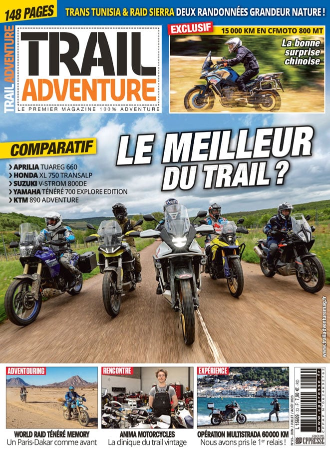 Un test de 15 000 km au guidon de la pertinente CFMOTO 800 MT, la découverte de l’atelier Anima Motorcycles qui restaure les modèles mythiques, des conseils pour adapter votre trail à votre taille et plein d’autres reportages sont aussi au programme de ce numéro.