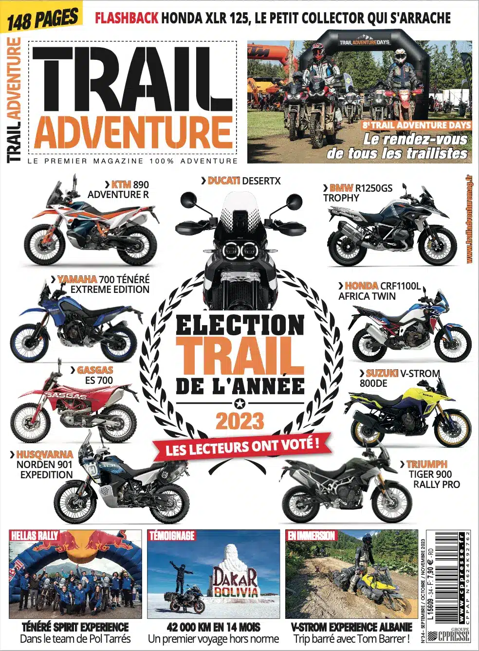 Dans ce numéro estival à 100%, partez à nouveau à l’aventure vers des destinations lointaines : en Albanie avec Tom Barrer à l’occasion du Suzuki V-Strom Experience, en Grèce au Hellas Rally, dans la roue de Pol Tarrès lors du Ténéré Spirit Experience, au Colorado ou encore dans les déserts espagnols pour deux beaux voyages à la manière du Western.
