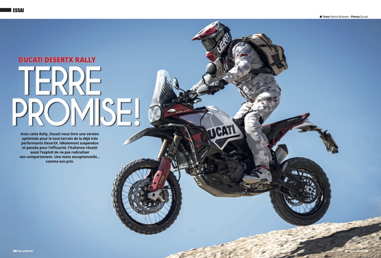 Ducati DesertX Rally : La marque italienne nous livre une version très typée tout-terrain de sa DesertX armée, entre autres, d’excellentes suspensions.