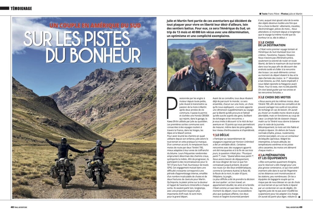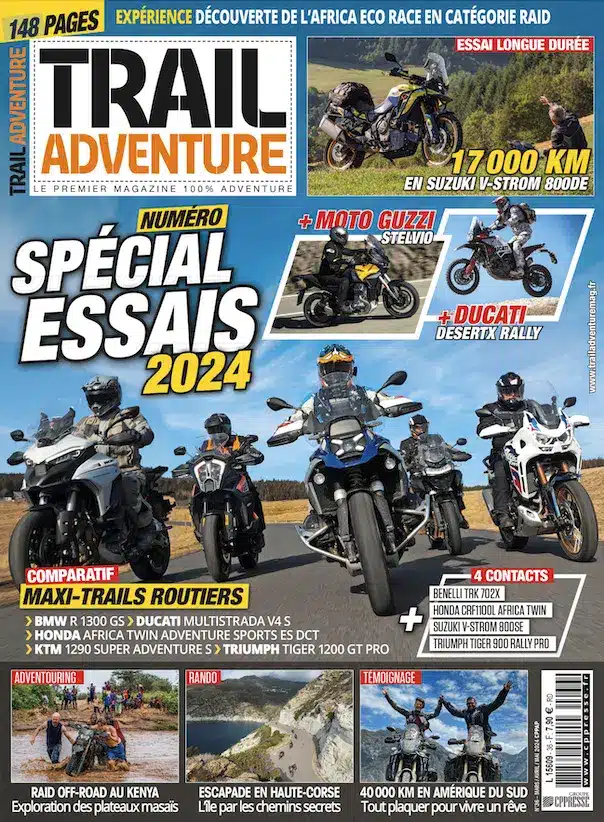 Mais ce n’est pas tout : un raid musclé au Kenya, la découverte de la Corse par les chemins, un flashback sur la mythique BMW R80G/S Paris Dakar ou encore l’agenda de vos prochaines sorties trail sont aussi au menu. Quel festin !