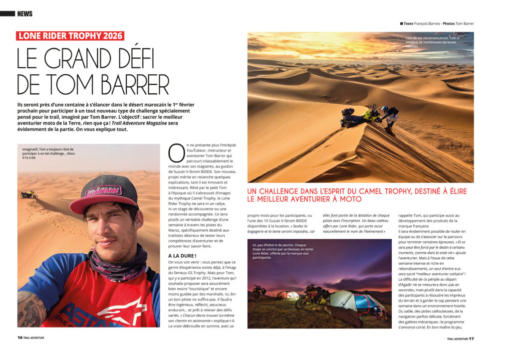 Focus sur le Lone Rider Trophy, le nouveau défi de Tom Barrer au Maroc en 2026.