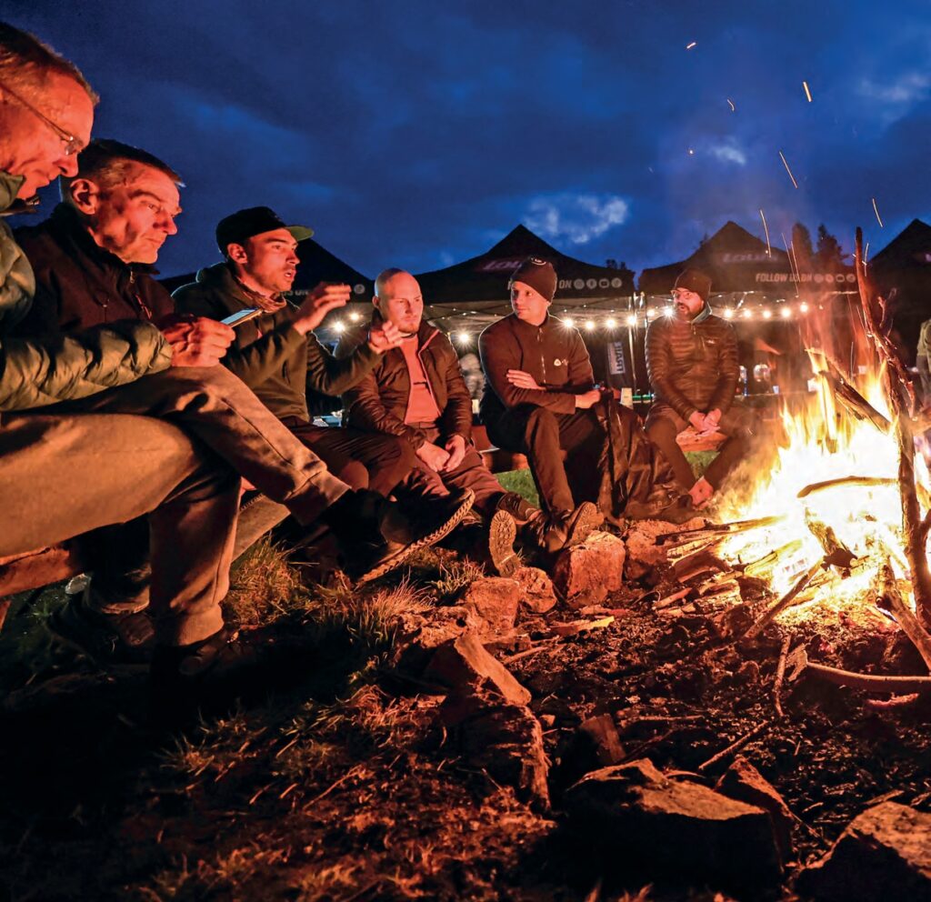 Le soir venu, tout le monde converge vers le bivouac. Tentes montées, braseros allumés, tables dressées : l’organisation soigne les détails. Autour du feu, on échange sur la journée, on parle motos, navigation GPS, trajectoires… et on refait le monde.
