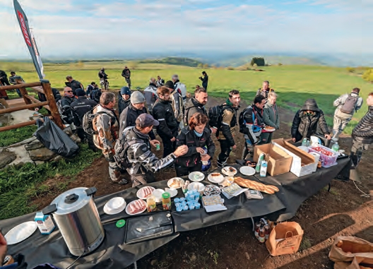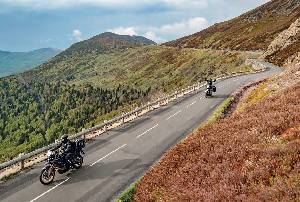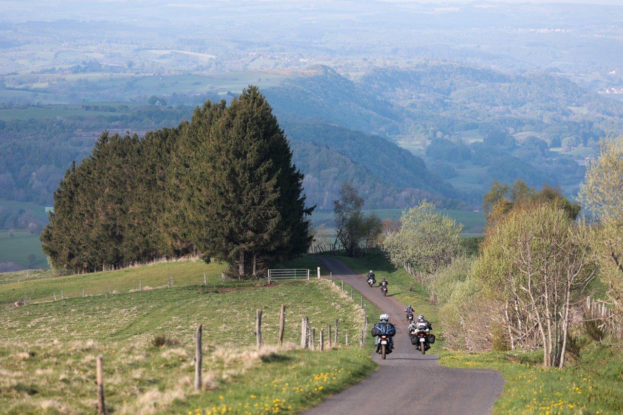 Le rendez-vous était donné à Super Besse, au pied du Sancy. Les participants arrivent de toute la France, seuls, entre amis ou en couple. Côté machines, le mélange est total : Suzuki DR350, Honda Transalp, Ducati DesertX Rally, BMW R 1300 GS, anciennes comme modernes. Un cocktail parfait pour une aventure à taille humaine.