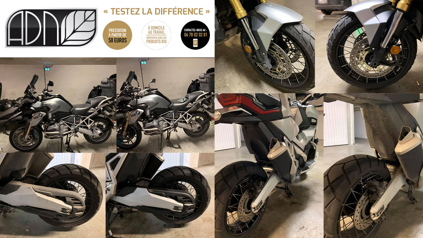 Votre moto a besoin d’un coup de propre mais le temps vous manque ? Voilà maintenant plusieurs années qu’ADN – alias As Du Nettoyage – a su démontrer son savoir-faire. Située en région parisienne, ses équipes interviennent à votre domicile ou sur votre lieu de travail pour un nettoyage sans eau, donnant à votre véhicule un air nouveau.