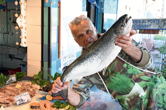 Toujours par la même piste, nous retournons à Jesolo et prenons ensuite la direction de Cavallino. Après l’embouchure du fleuve Sile sur la mer Adriatique, en direction de Treporti, les couleurs sont splendides : le bleu du ciel se combine avec la couleur profonde de la mer, contrastant fortement avec le blanc des bateaux et des mouettes. Nous nous arrêtons brièvement chez Maurizio, le poissonnier du pont. L’homme est affable et toujours prêt à plaisanter. Son étal de poissons fait très envie mais, hélas, le transport de ce genre de marchandises est assez peu recommandé à moto. Une autre fois, promis.