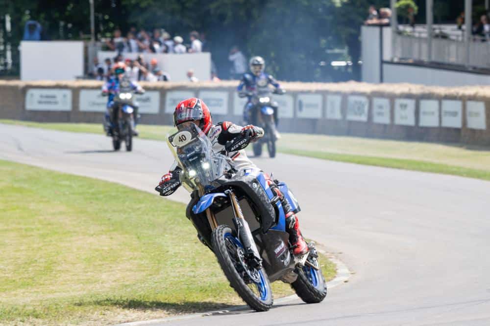 Les pilotes de la Yamaha Ténéré Rally Team, Pol Tarrés et Alessandro Botturi, ont conquis la colline de Goodwood au guidon de leurs Ténéré 700 World Raid officielles. Leur maîtrise et leurs acrobaties, notamment des wheelings spectaculaires, ont captivé le public. Ils ont été rejoints par des légendes du MotoGP, Randy Mamola, cofondateur de Two Wheels for Life, et Kenny Roberts, triple champion du monde en Grand Prix 500 cm³, sur des Ténéré 700 World Raid GYTR.