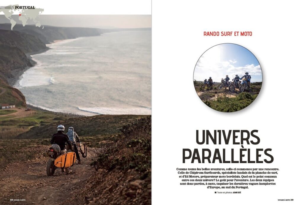 avec le récit de cette bande de potes partis au Portugal pour réunir leurs deux passions : le surf et la moto. Le portrait d’une illustratrice transmettant ses émotions de voyage à travers le dessin, des conseils pour bien préparer ses bagages quand on roule en duo et plein d’autres reportages passionnants sont à déguster dans ce 19e opus.